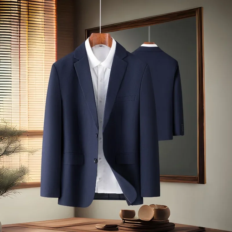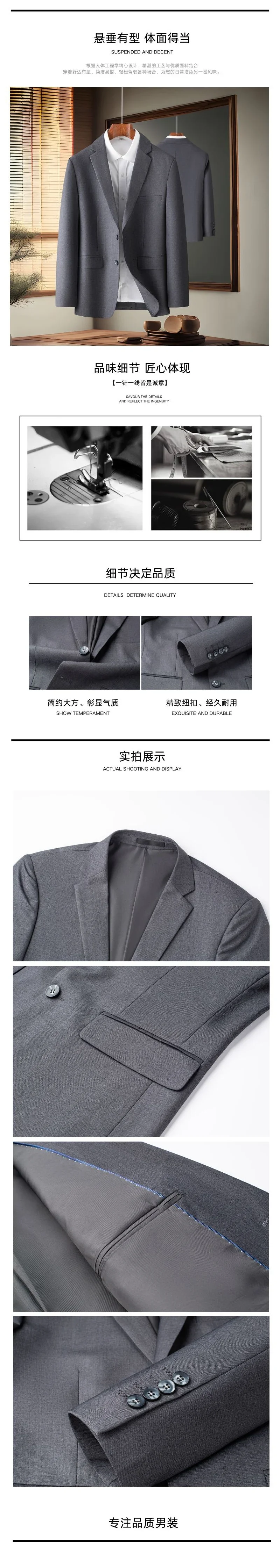 2024 Men's Fine Solid Color Business Suit Coat - Fashionable Gray Black Navy Blue Single-breasted Casual Work Leisure Jacket