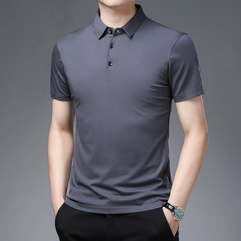 2024 Men's New Solid Color Business Casual POLO Shirt Summer Fashion Casual Short Sleeve Comfortable and Breathable Top