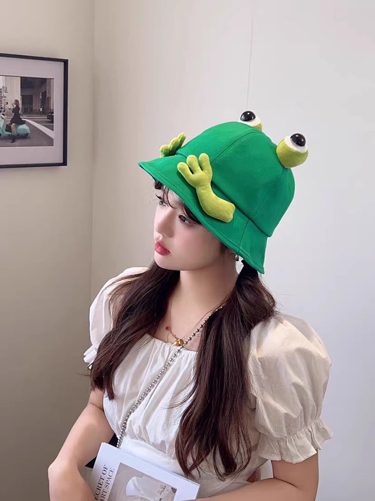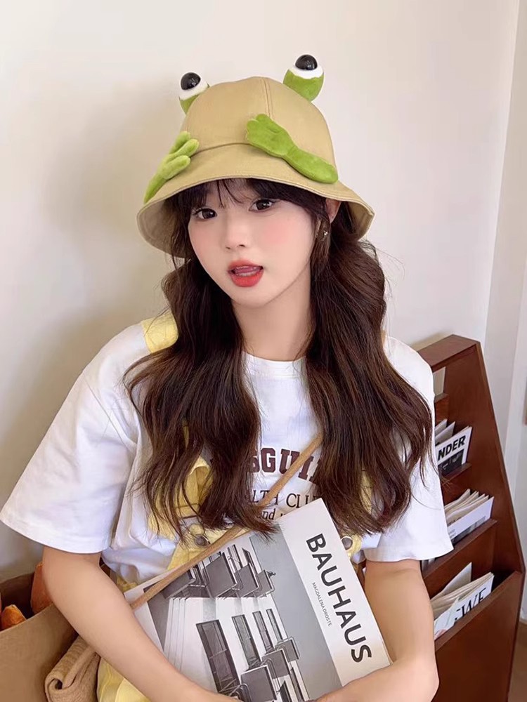 2024 New Cute Big Eyes Frog Bucket Hats Outdoor Foldable Sun Fishing Cap Women Lady Summer Cotton Wild Panama Hats