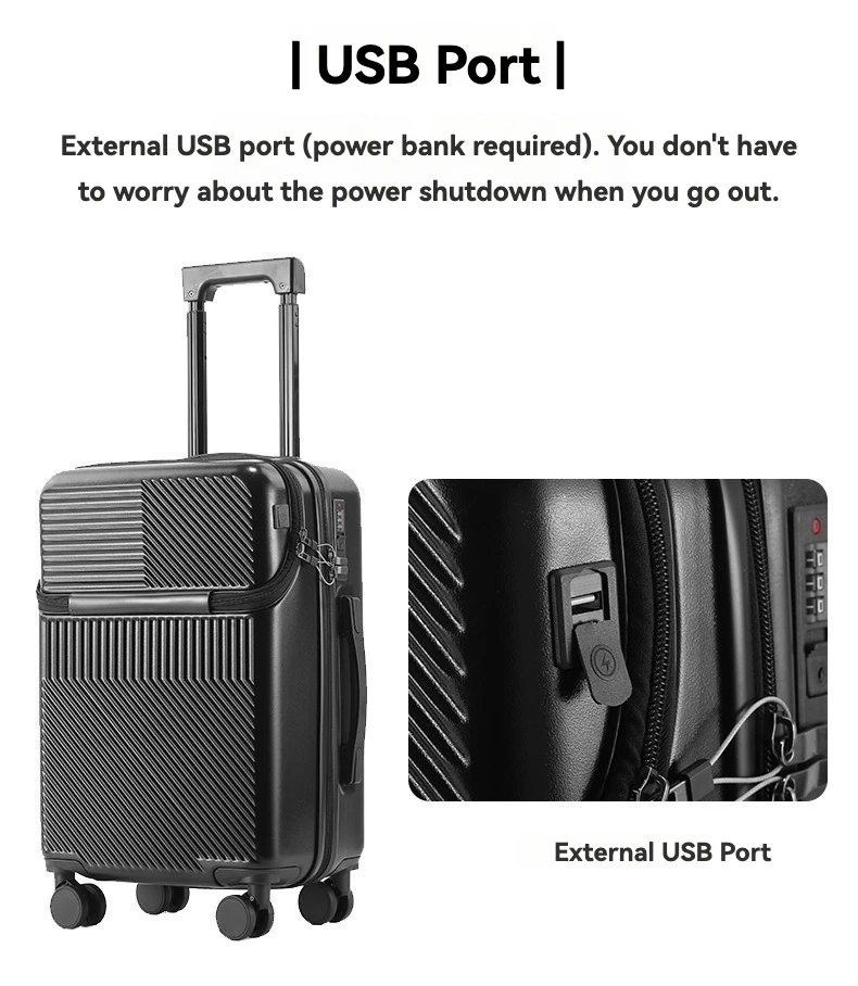 2024 New Durable Luggage Sets Suitcase Front Open TSA Lock USB Slient Spinner Wheel Charging Men Carry-On Travel 20/22/24/26