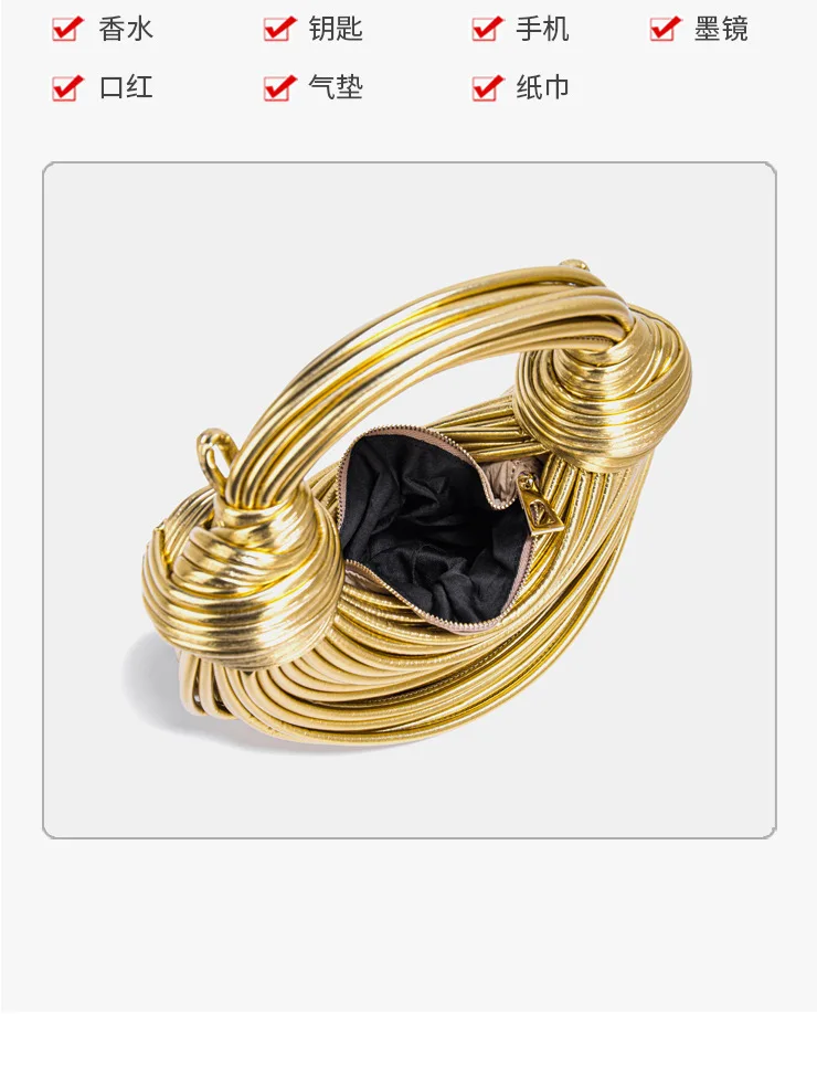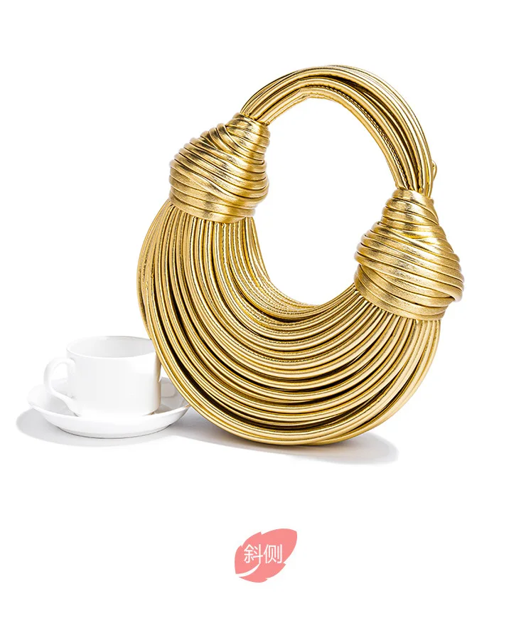 2024 New Gold Handbags for Women Luxury Designer Brand Handwoven Noodle Bags Rope Knotted Evening Clutch Underarm Dumpling Bag