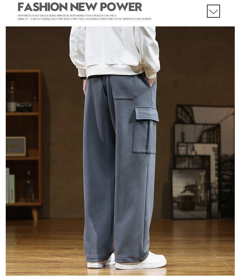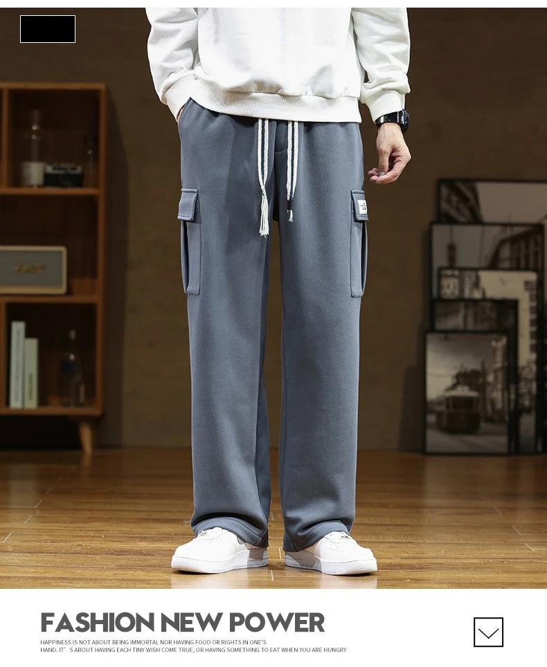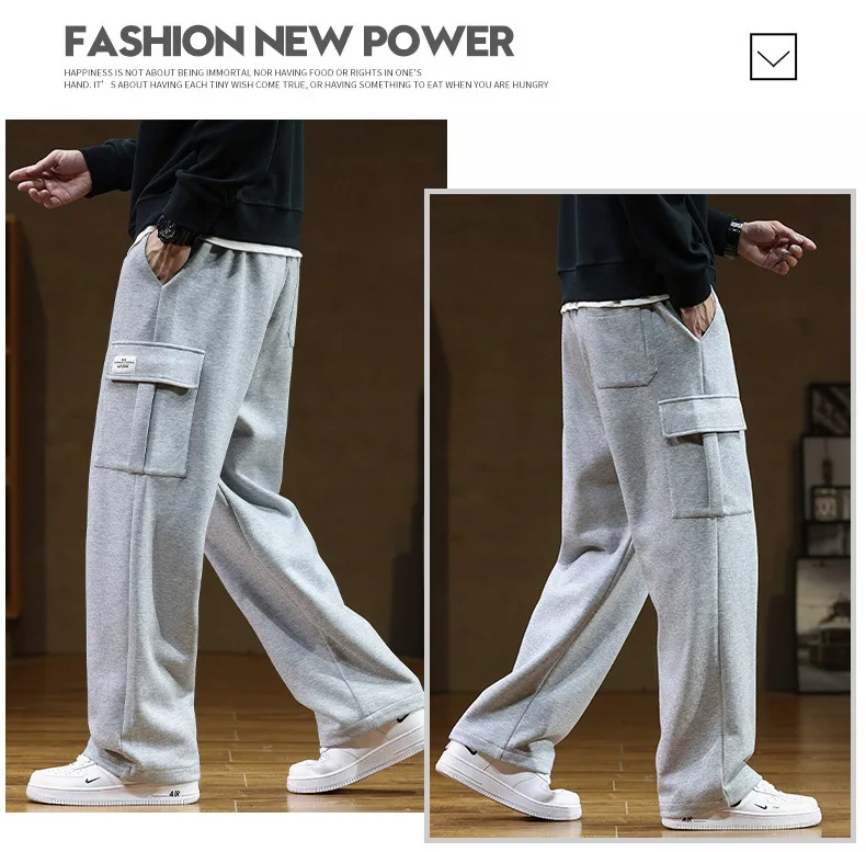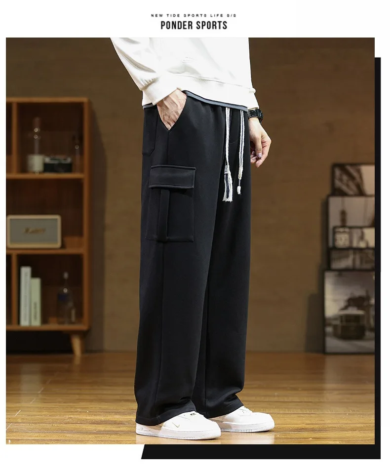 2024 New in Wide Leg Pants Men Autumn Straight Elastic Waist Baggy Cargo Trouser Male Relaxed Streetwear Sweatpant Plus Size Big