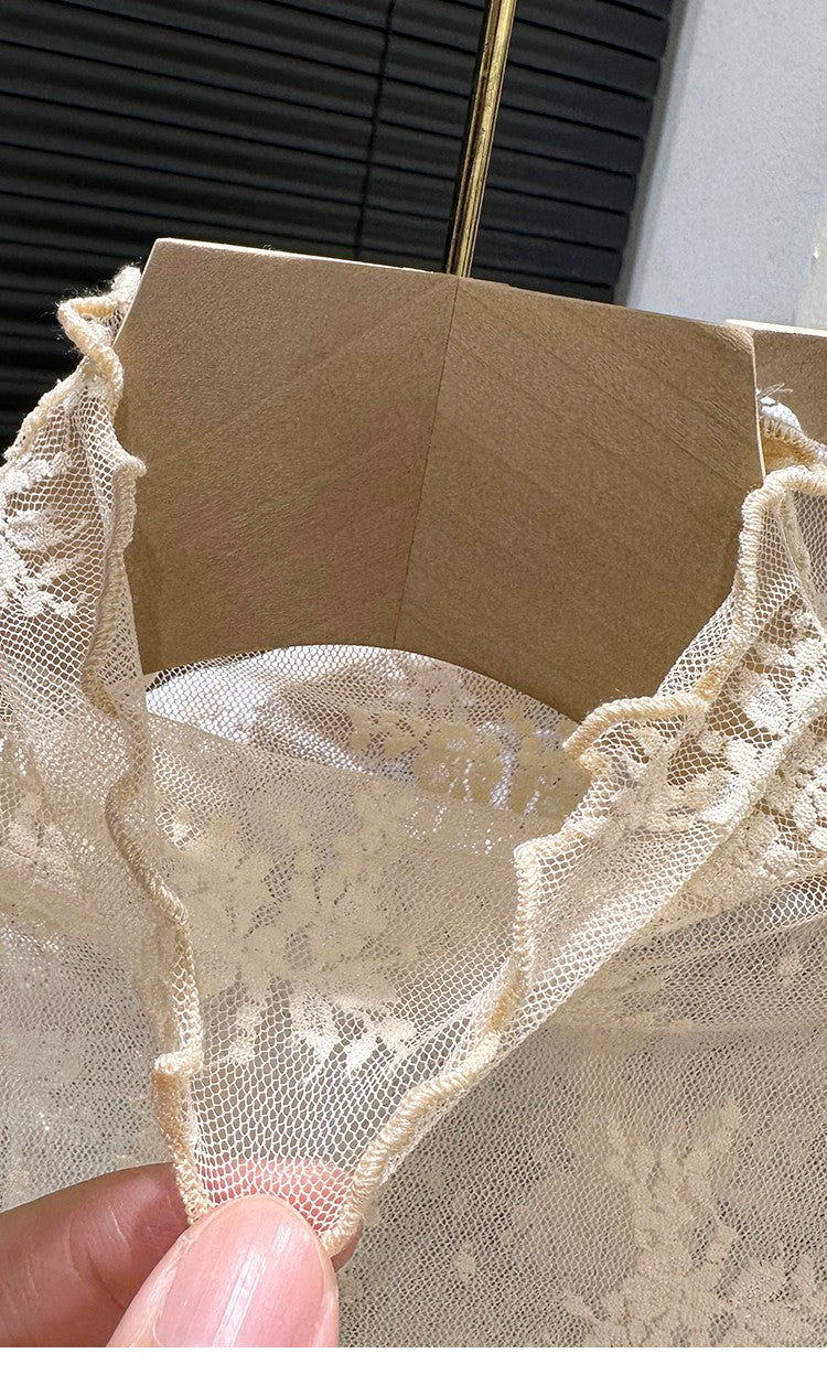 2024 New Lace Svel Mo Collar Top Women's Inner Wear f High Collar ort Length Base irt Korean Sle Commute Wind