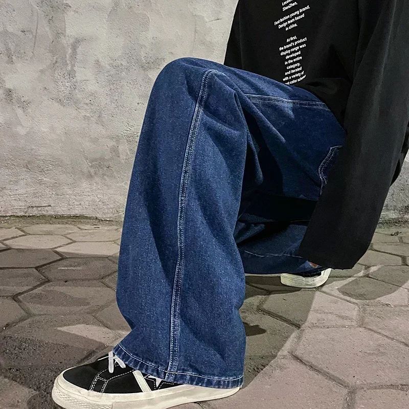 2024 New Streetwear Loose Jeans Men Korean Style Fashion Loose Straight Wide Leg Pants Men's Brand Clothing Black Light Blue