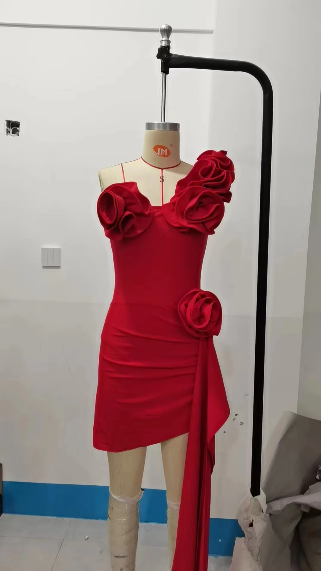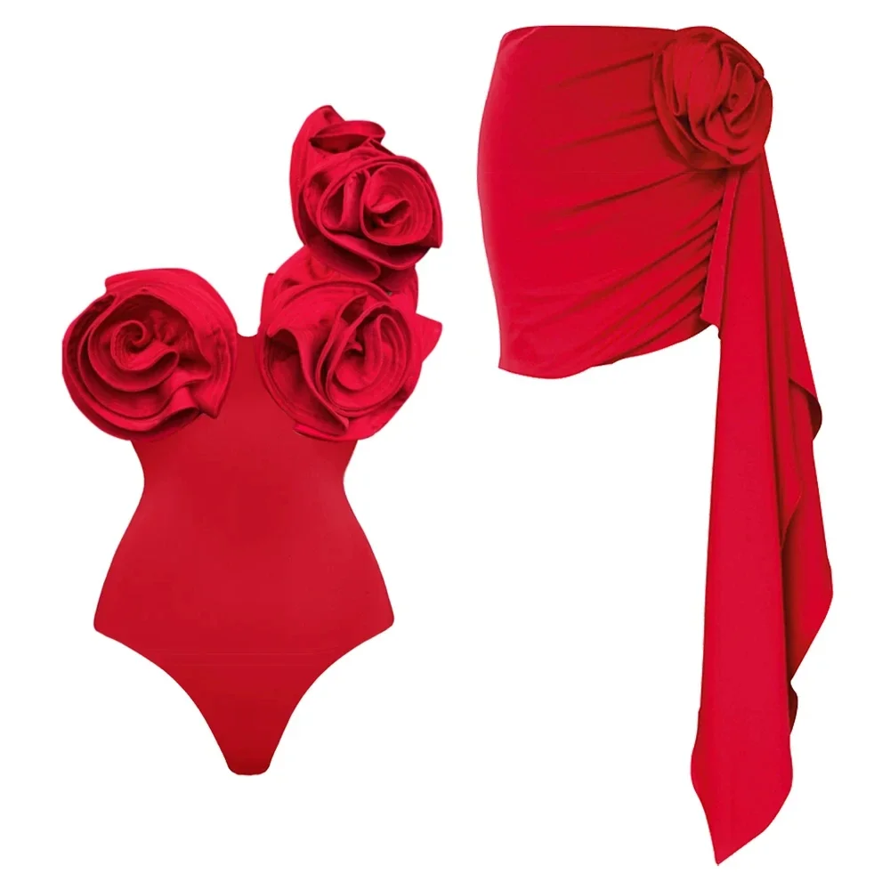 2024 Sexy Red 3D Ruffle Flower One Piece and Skirt set Swimwear beachwear Party Dress Clearance Wholesale