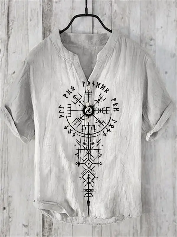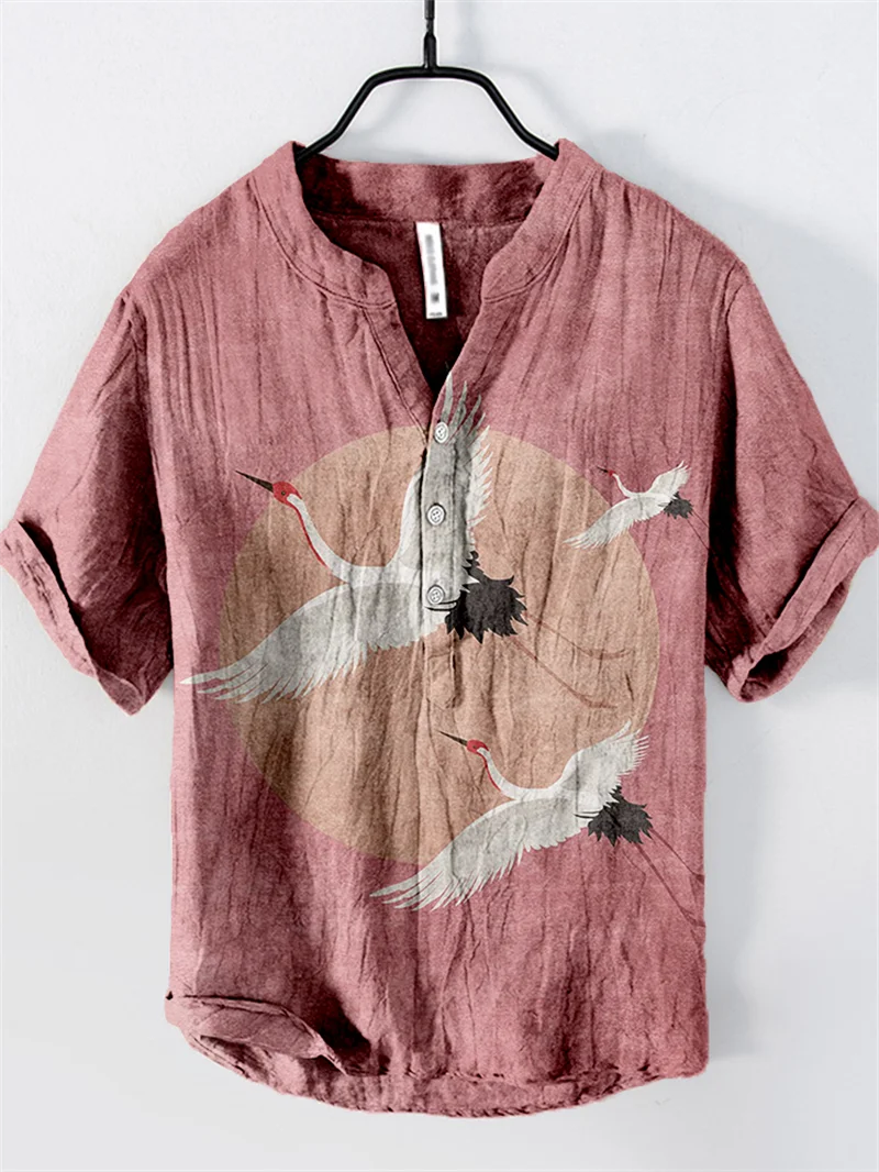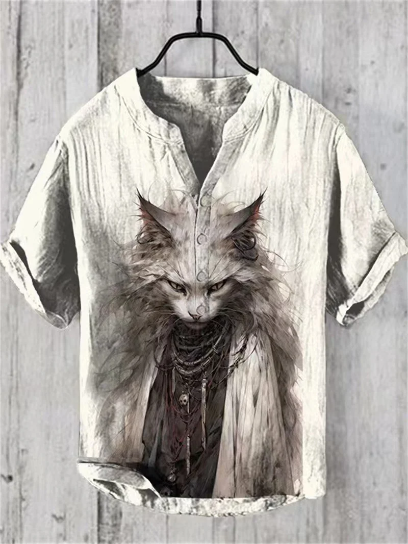 2024 Summer Retro Style European and American Popular Linen Short sleeved Shirt Fashion Hawaiian Shirt Button V-neck