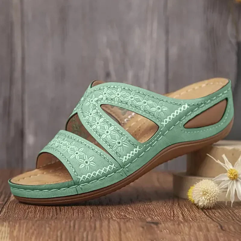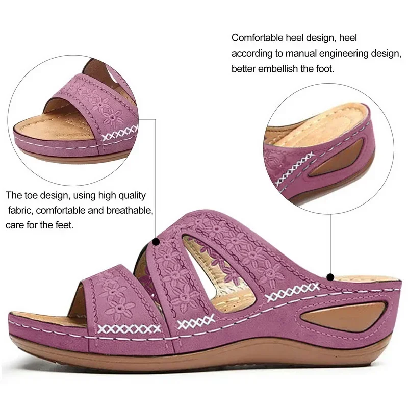 2024 Summer Women Wedge Sandals Premium Orthopedic Open Toe Sandals Vintage Anti-slip Leather Casual Female Platform Retro Shoes