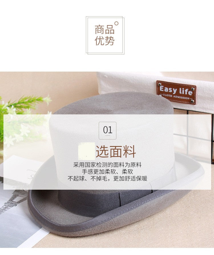 2024 Wool Flat Man Top Hat Fashion Fedora Hats Versatile Panama Magician Cap Gentleman Cylinder Strap Steampunk Unisex Elegant