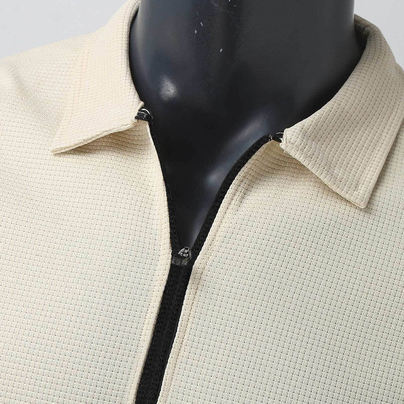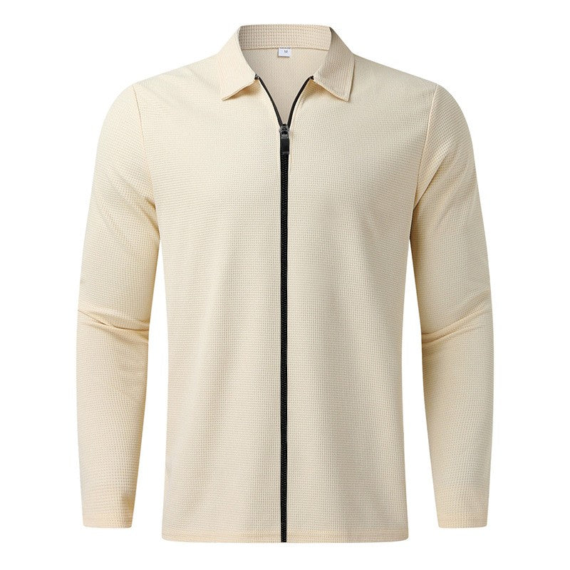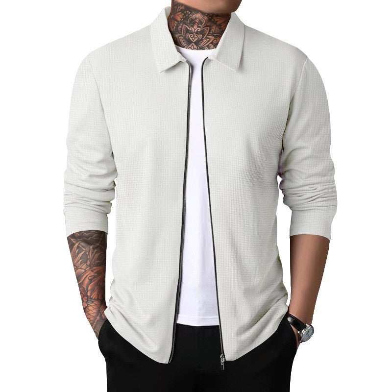 2024Summer Popular Waffle Outdoor Polo Collar Jacket Men's Coat Nick Garment Casual Sports Zipper Cardigan Long Sleeve Coat