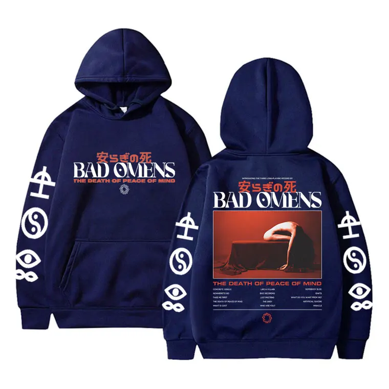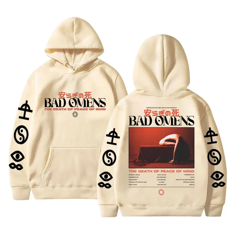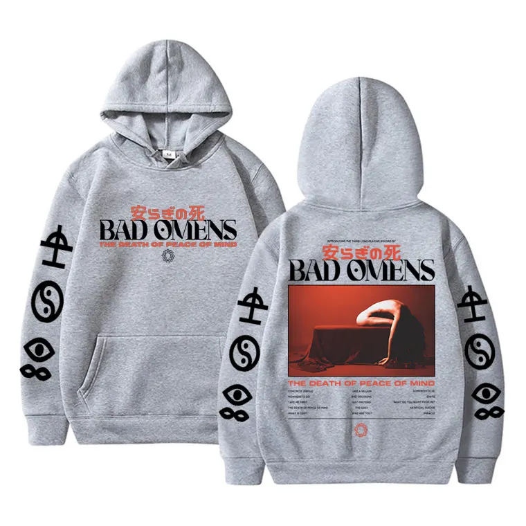 2025 Autumn/winter Bad Omen Band Peace of Mind Dead Music Album Printed Hoodie Men's Pure Cotton Rock Retro Warm Sweatshirt