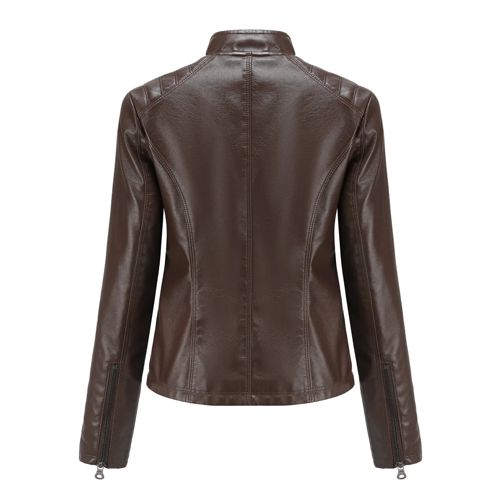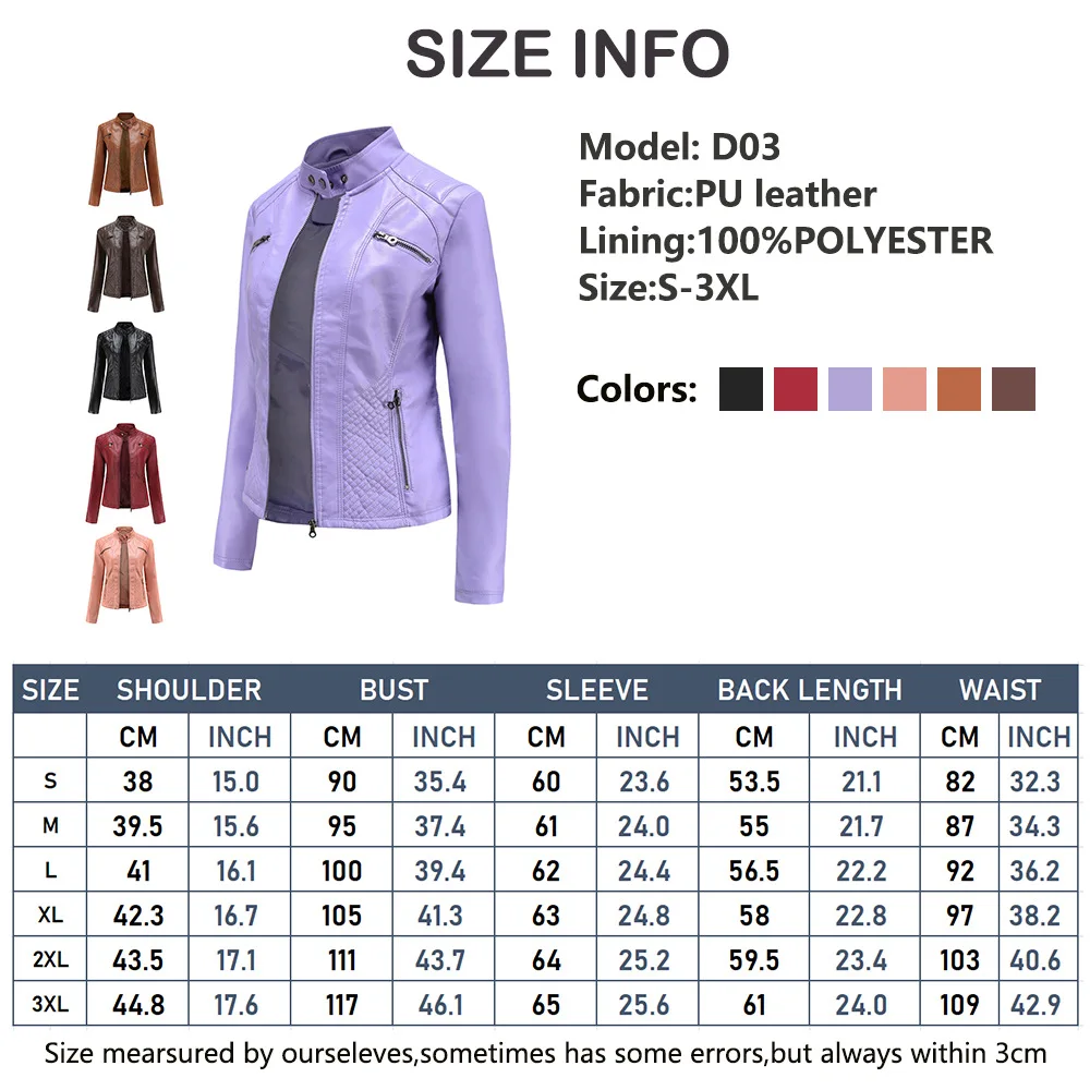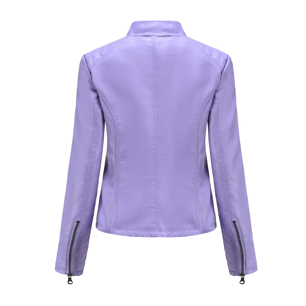 2025 Autumn Women's Black Moto Biker Zipper Jacket, Red Apricot Coffee PU Coat, Light Purple Outerwear.