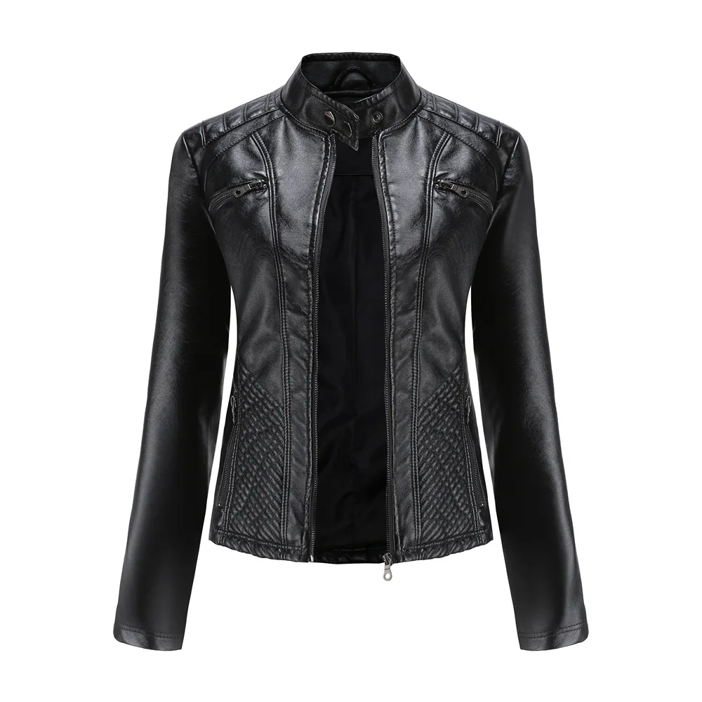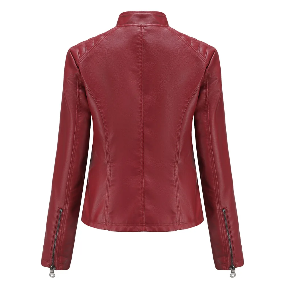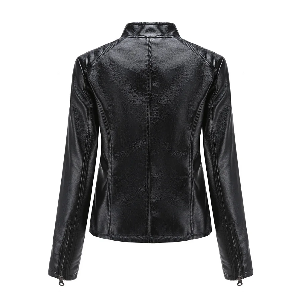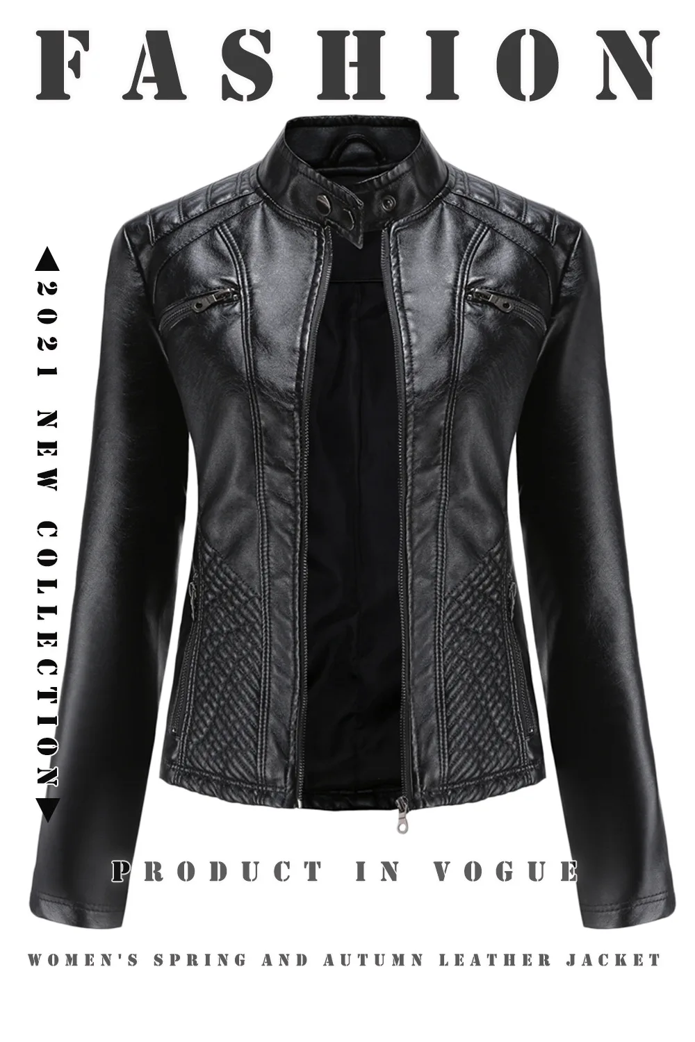 2025 Autumn Women's Black Moto Biker Zipper Jacket, Red Apricot Coffee PU Coat, Light Purple Outerwear.