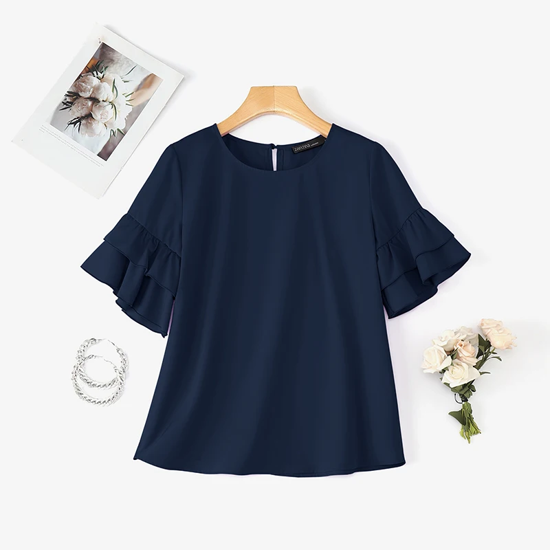 2025 Elegant Office Lady Blouses ZANZEA Summer O Neck Short Sleeve Blouse Women Stylish Solid Holiday Shirt Female OL Work Tops