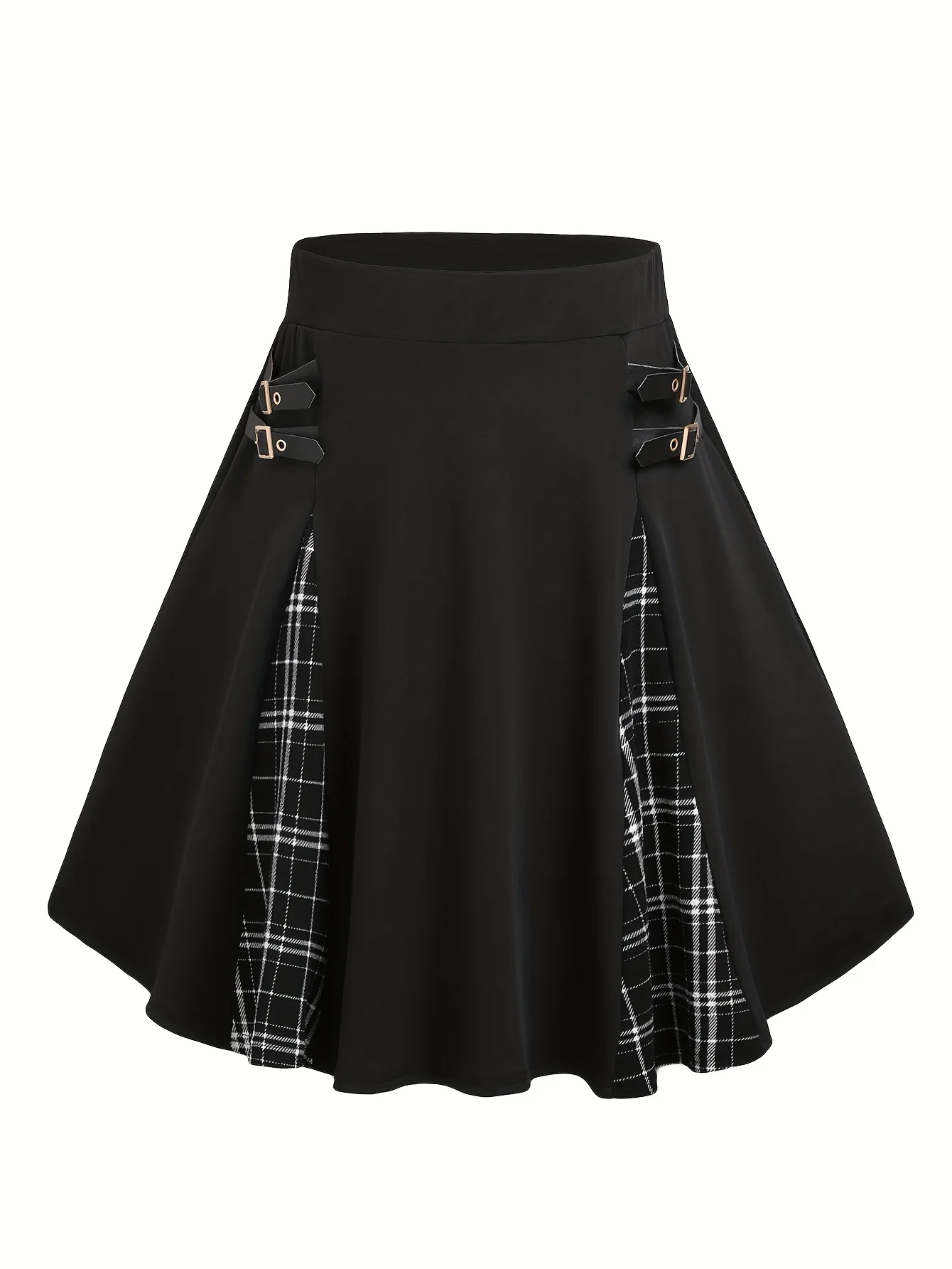 2025 European and American fashion summer new large size girls Gothic mini skirt high waist plaid A-line
