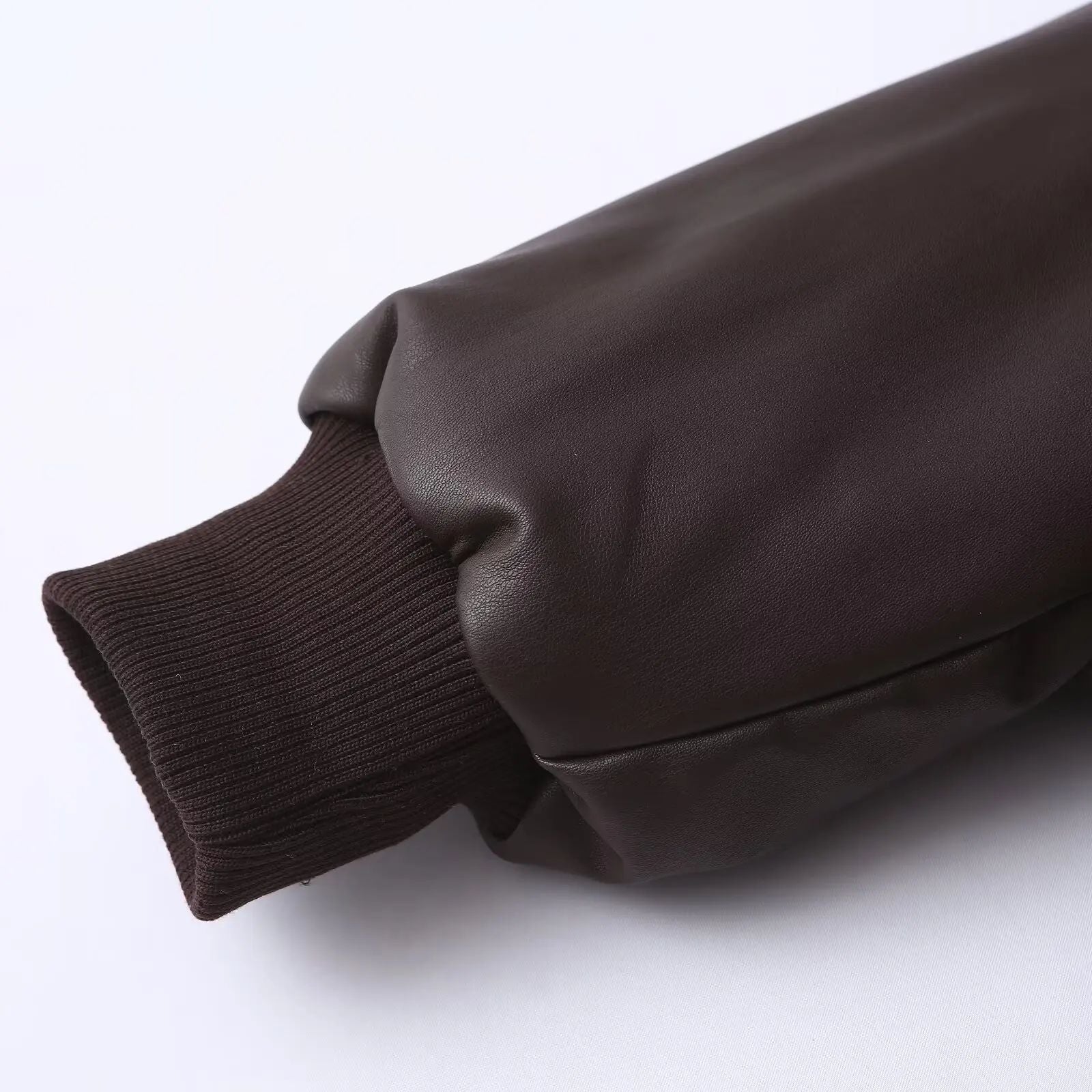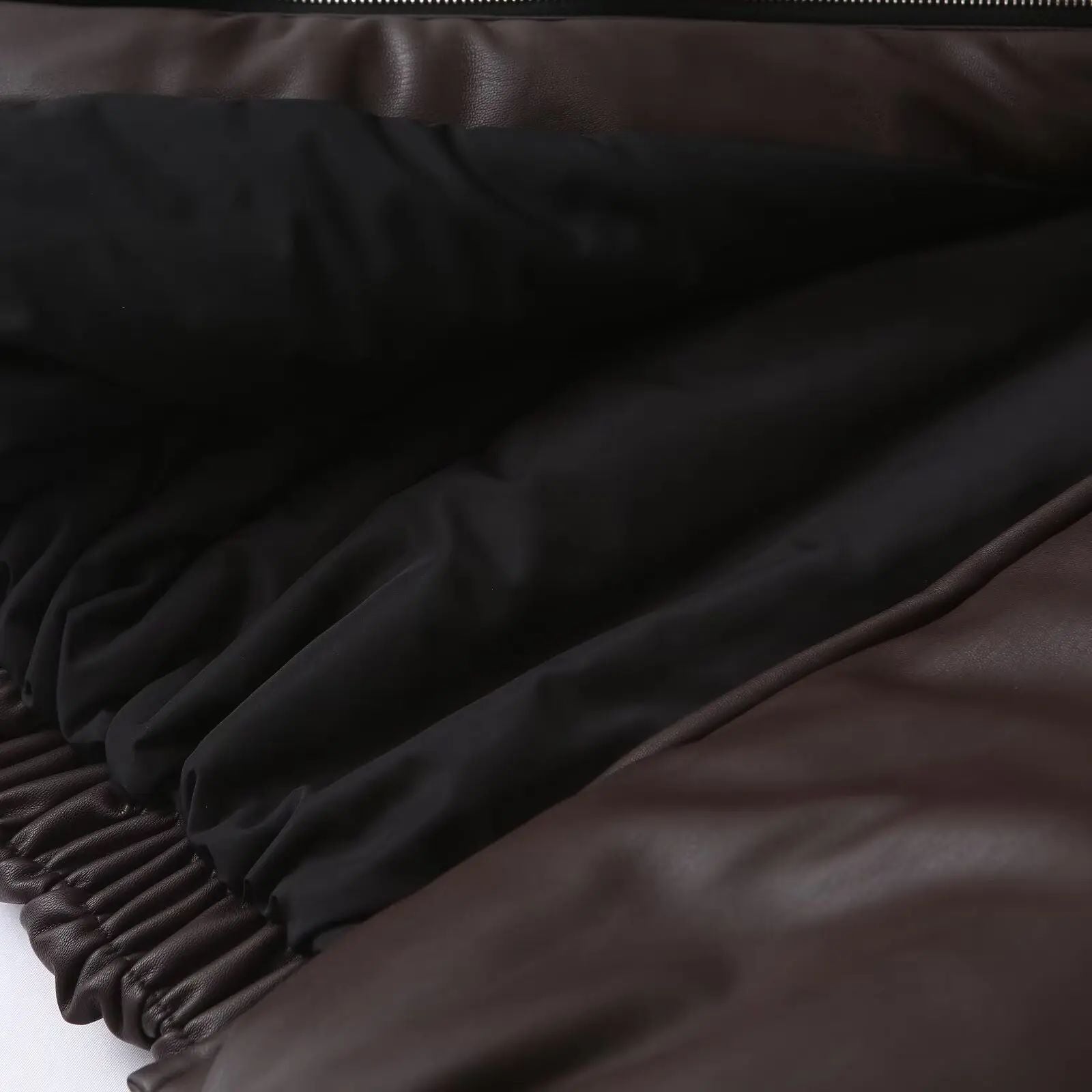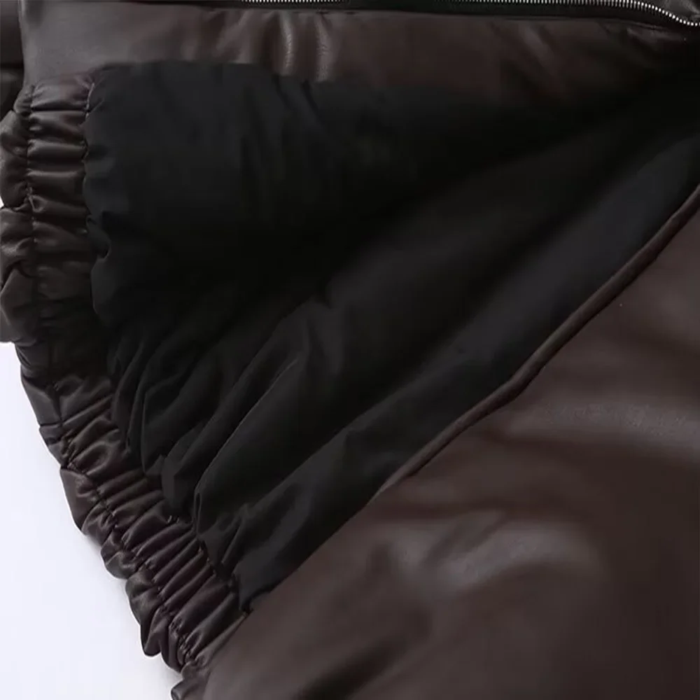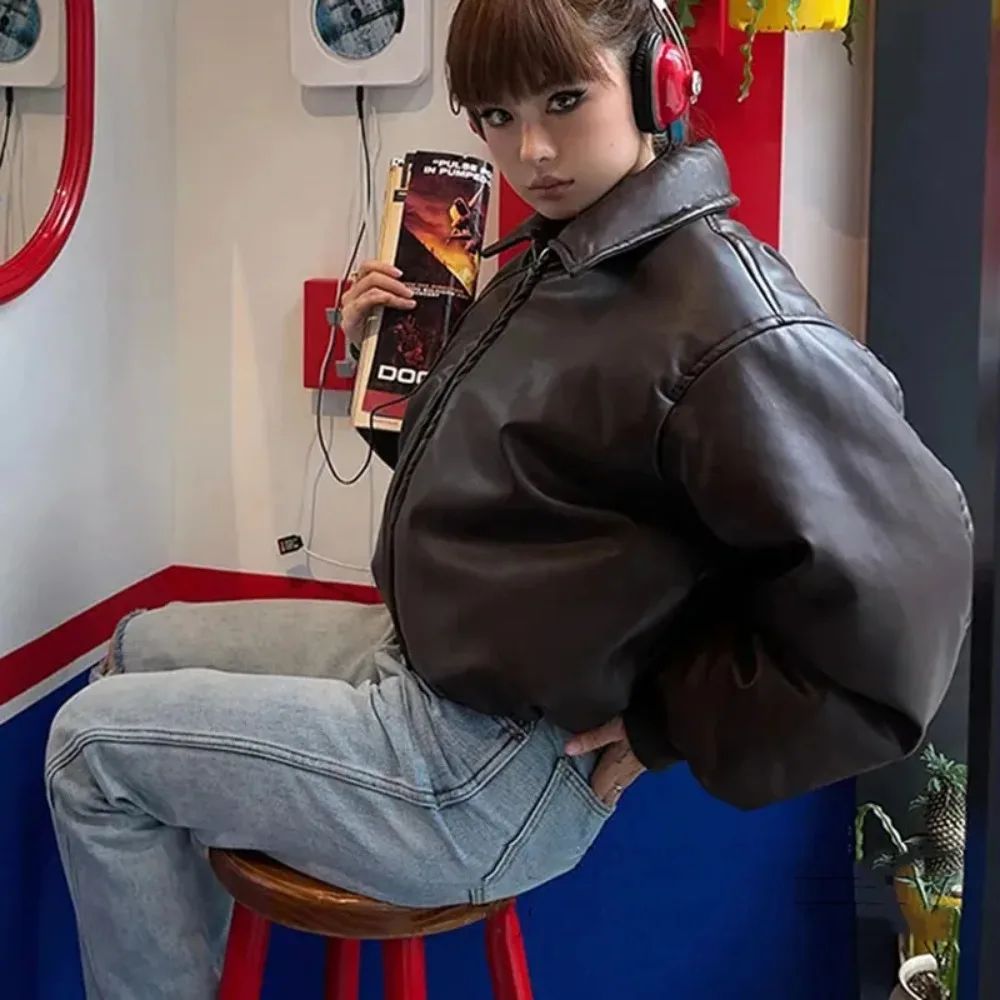 2025 Fall Winter Faux Leather Jacket for Women Oversized Streetwear Cotton Padded Parkas Short Bomber Coat Warm