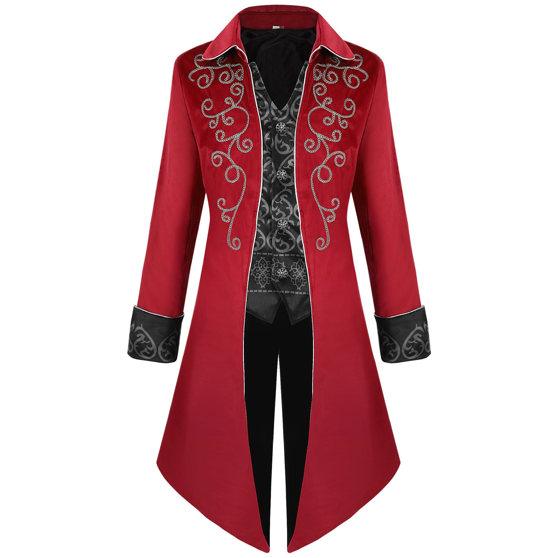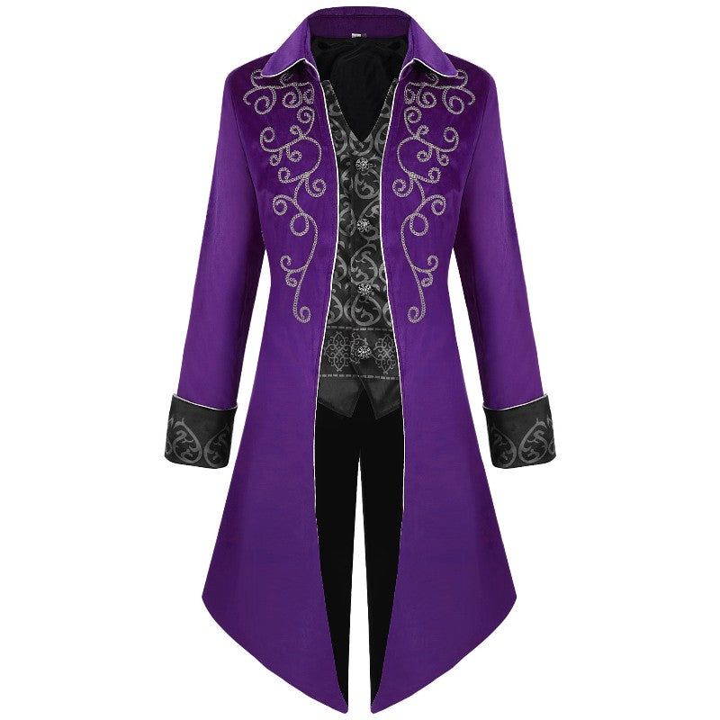 2025 Medieval Vintage Silver Trim Jacquard Men's Tuxedo, COS Prom Performance Steampunk Dress Jacket, Easter Halloween Costumes