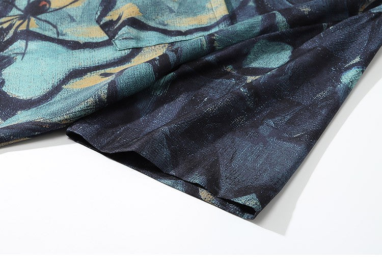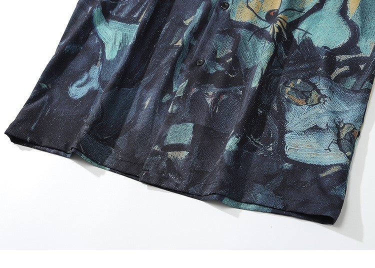 2025 Men Harajuku Hawaiian Shirt Hip Hop Streetwear Butterfly Painting Print Beach Shirt Summer Short Sleeve Aloha Shirt Casual