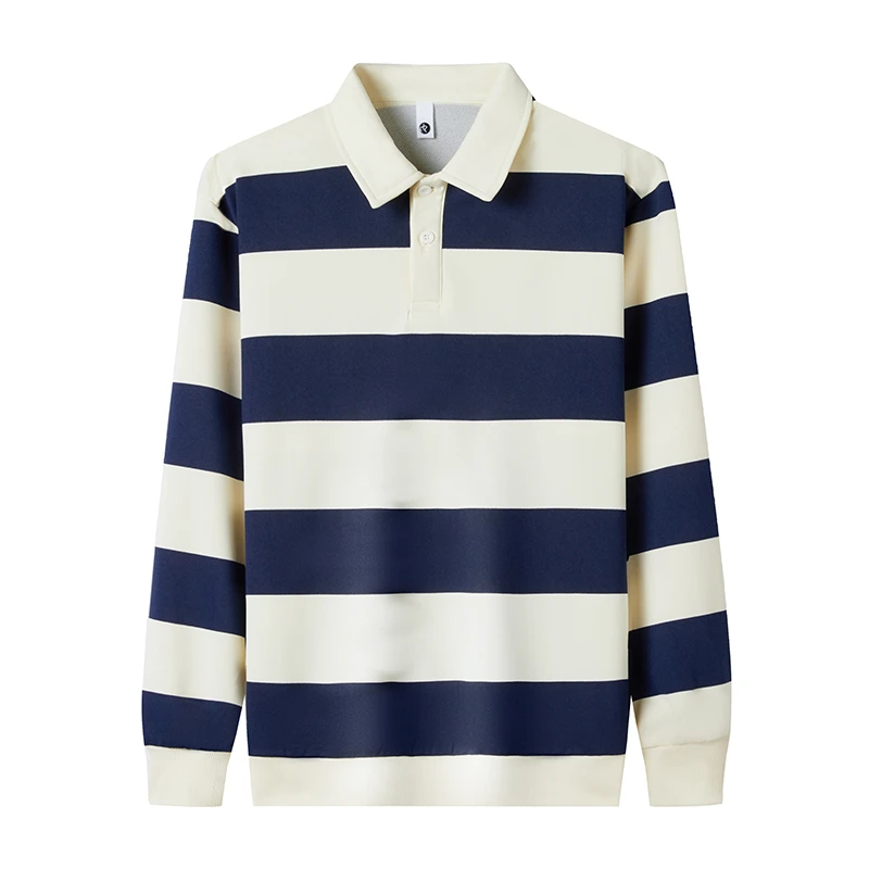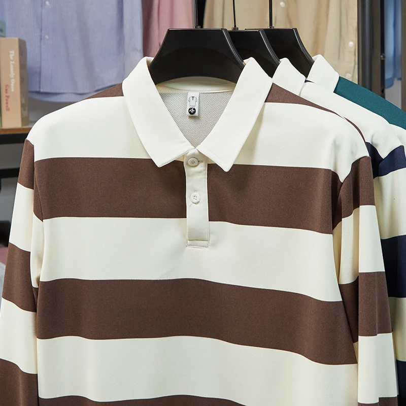 2025 Men's New Striped Long Sleeved Polo Shirt Casual Fashion Autumn Winter Versatile Top