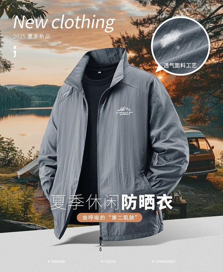 2025 Men's Summer Sun Protection Jacket Ultra-Light Thin Skin-Friendly Breathable UV Proof Fishing Ice Silk Sunscreen Coat