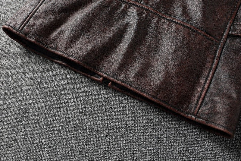 2025 New 1930s-Style Heavy Wash Leather Jacket for Men - Stone-Aged Vintage Distressed Full-Grain Cowhide Biker Coat