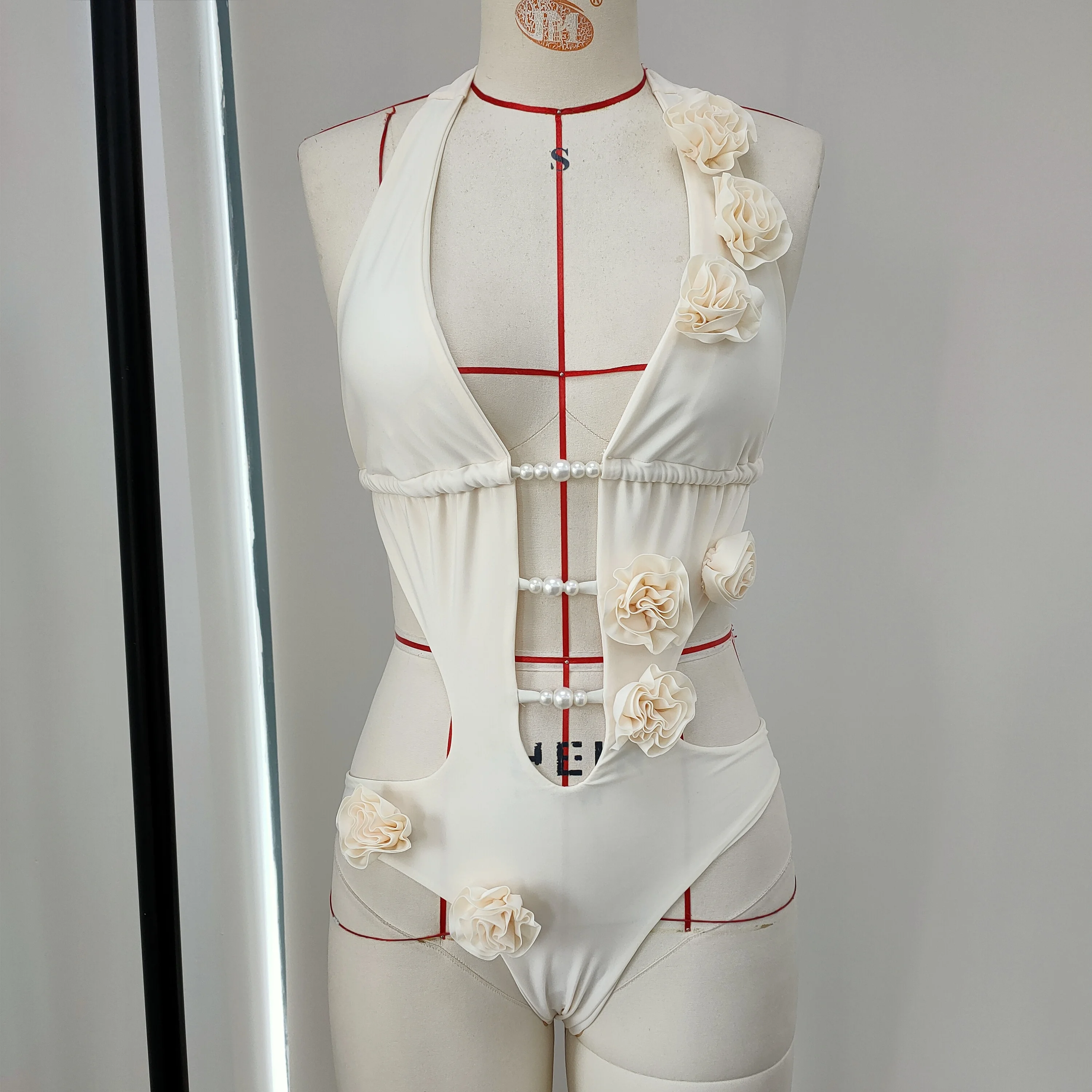 2025 New 3D Flowers One Piece Swimsuit Women Solid Sexy Hollow Out Swimwear Tropical Summer Beachwear Bathing Suit Bodysuit