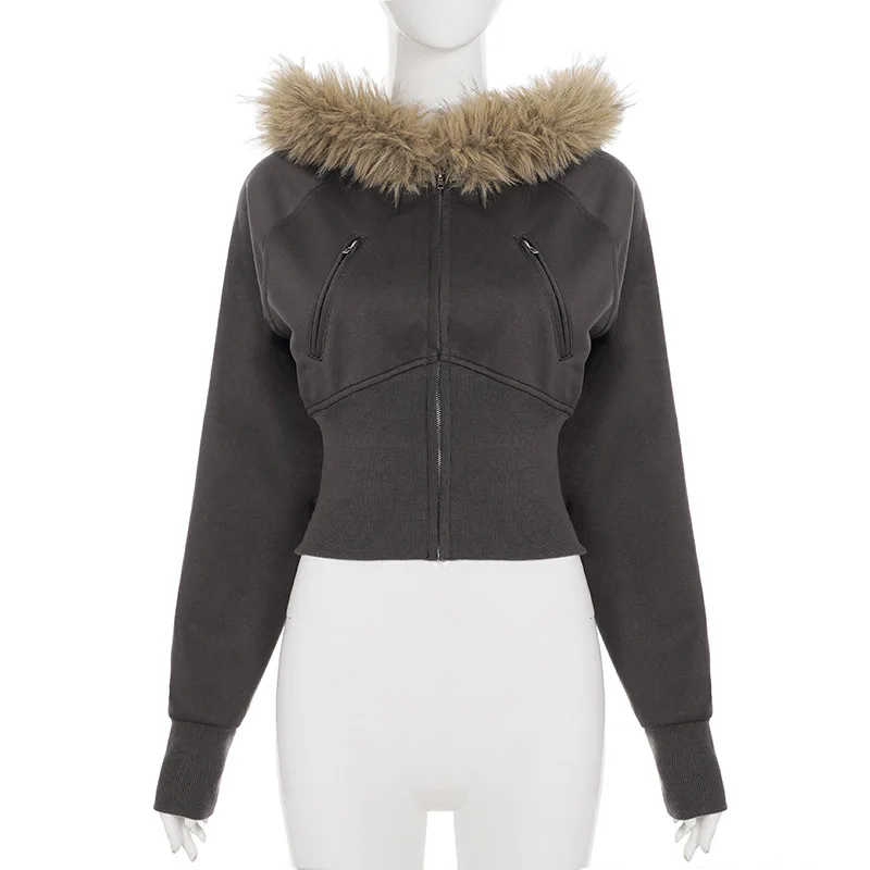 2025 New Autumn Winter Hooded Jackets Fashion Women Long Sleeve Slim Y2K Zipper Vintage Coats High Street Fleece Pocket Outwear