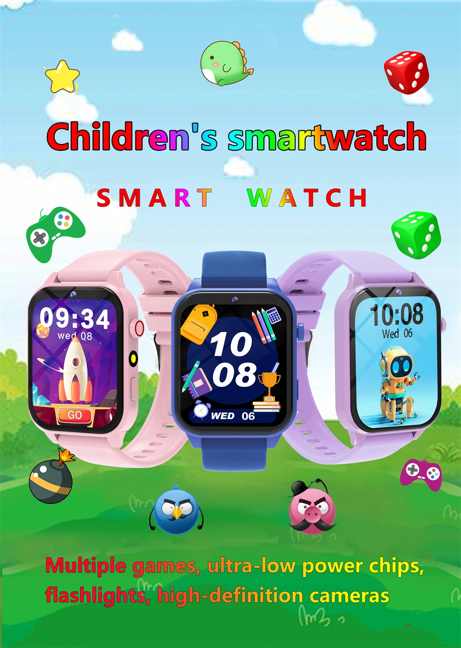 2025 New Children Smart Watch Alarm Clock LED Flashlight Waterproof Kid Watches HD Camera Take Photo Puzzle Game Smartwatch Girl