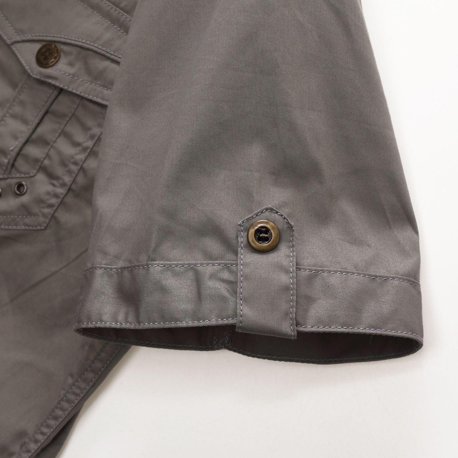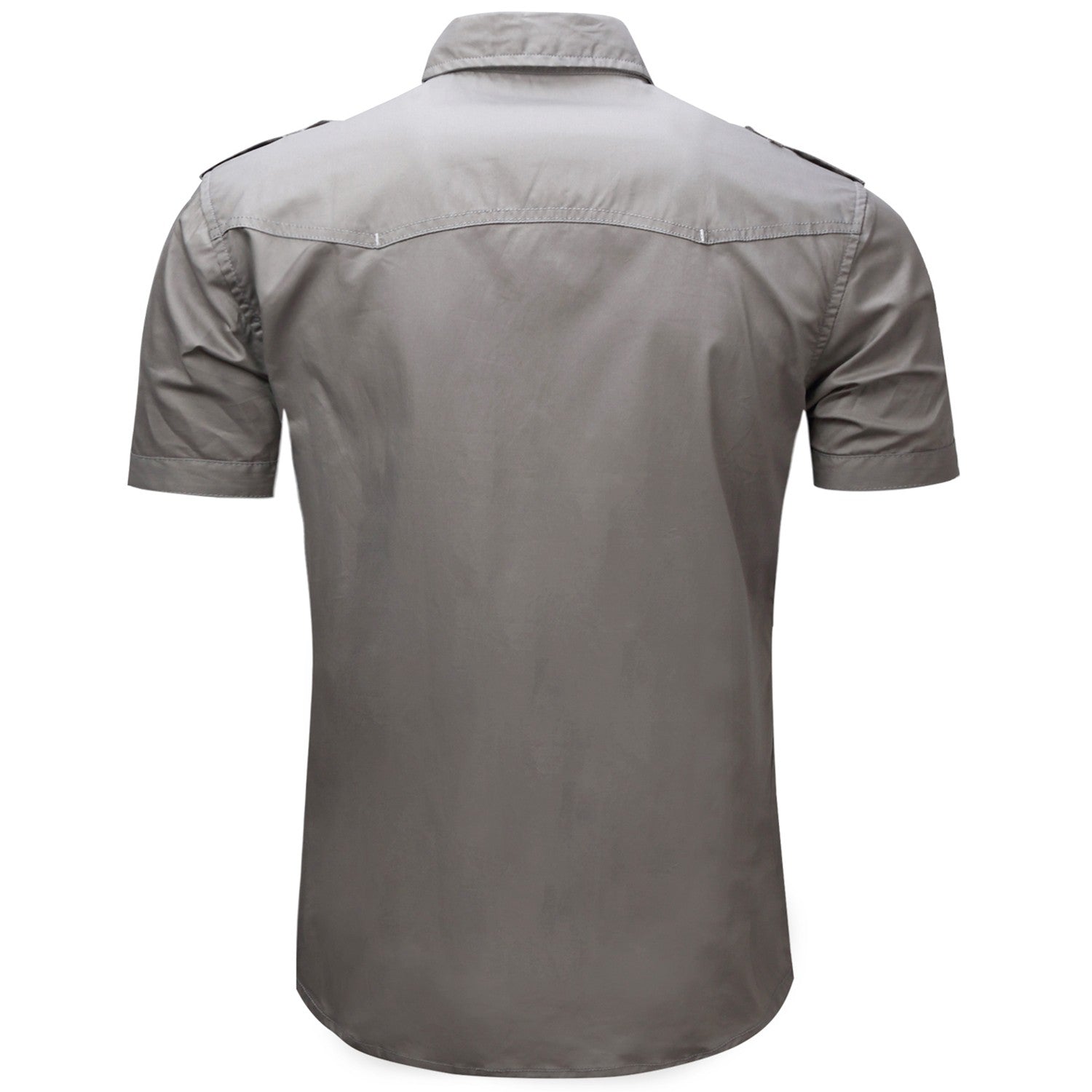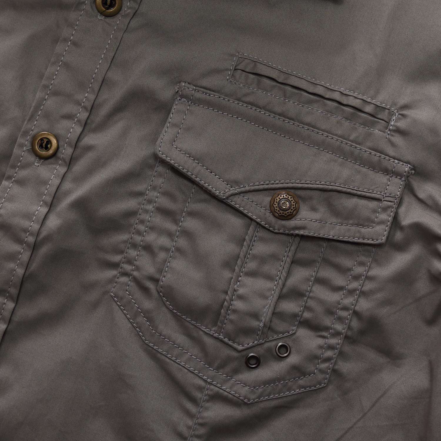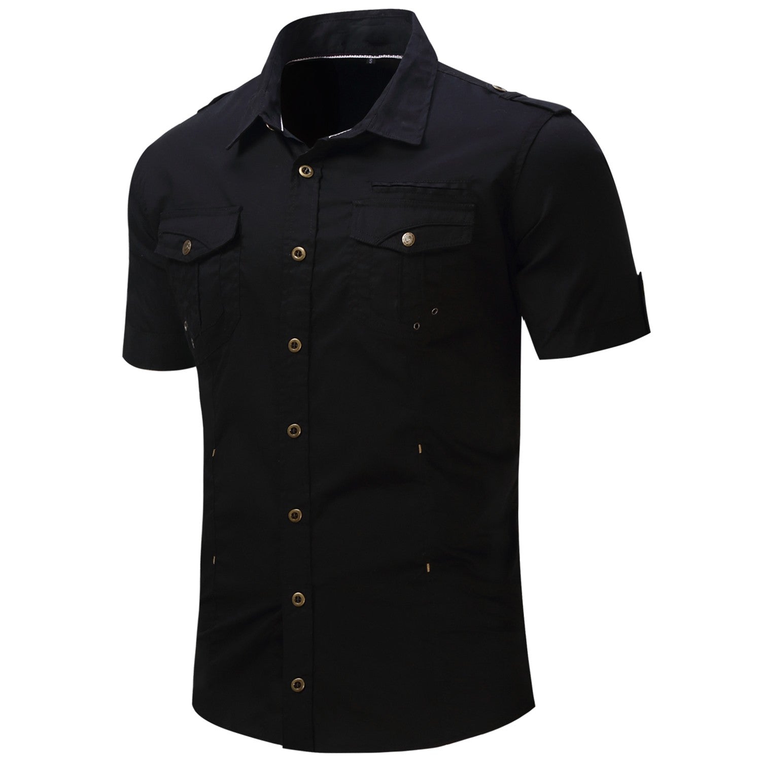 2025 New Fashion Men's Short Sleeve Safari Shirt Tops Summer 100% Cotton Solid Color Casual Cargo Work Shirts with Pocket