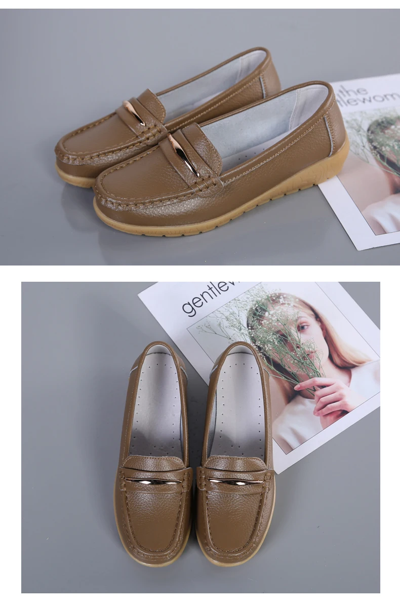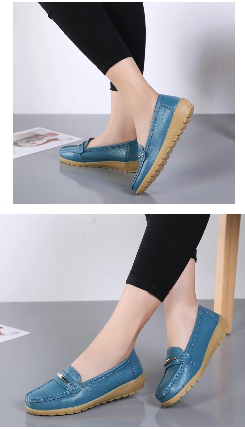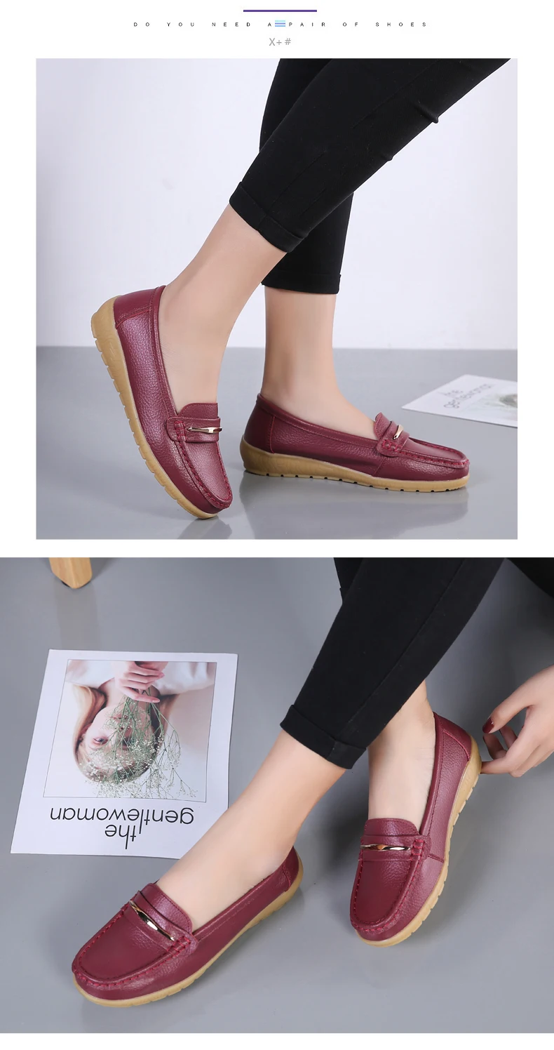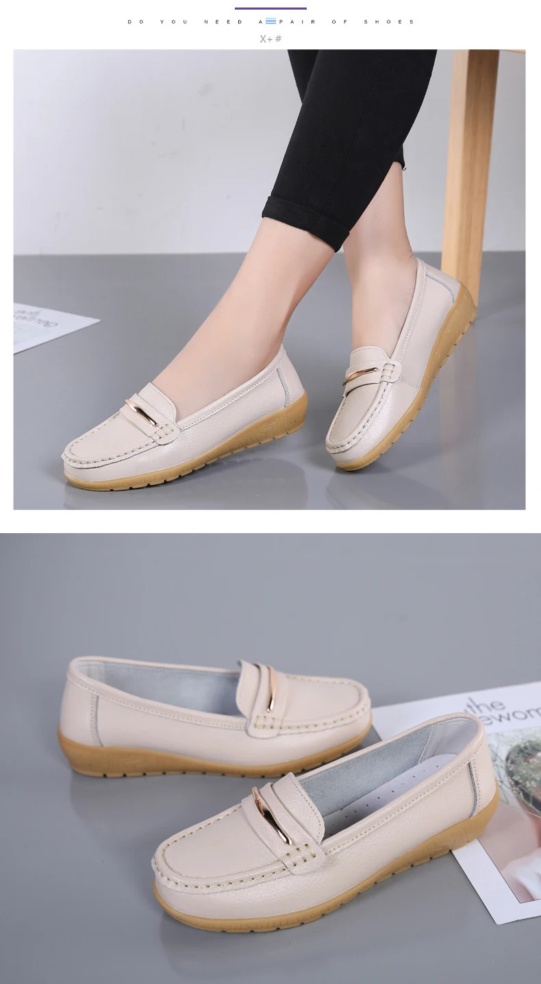 2025 New Genuine Leather Shoes Woman Slip On Women Flats Moccasins Women's Loafers Spring Autumn Mother Shoe Big Size 35-44
