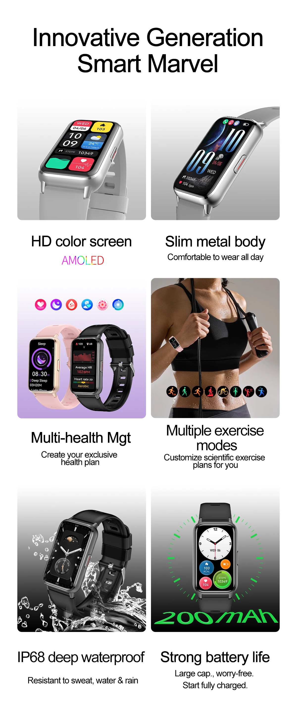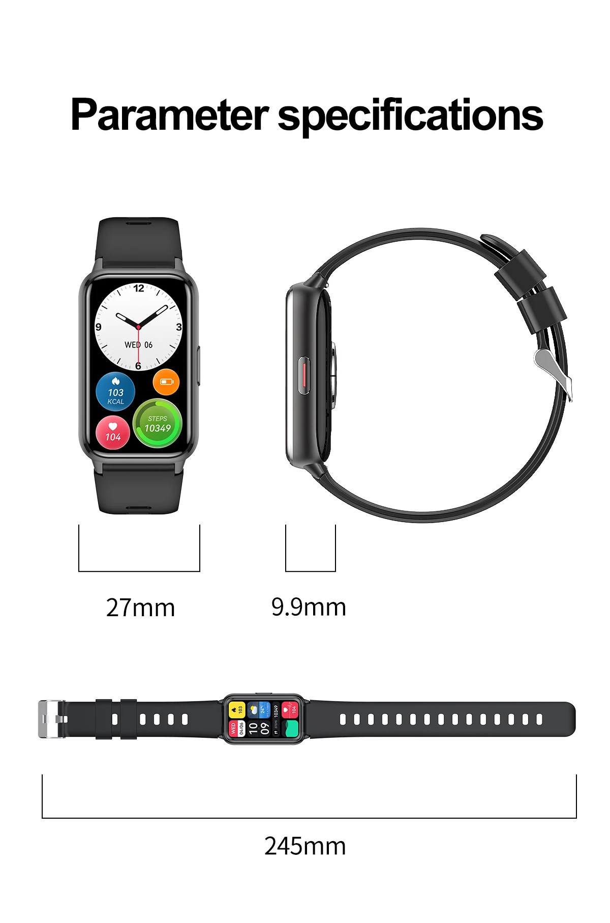 Bluetooth call, voice control, Alipay, always-on screen, NFC, breathing training, calendar, payment QR code, calculator, password unlock, custom dialer, weather forecast, music control, step count, heart rate, sleep, sedentary time, mileage, blood oxygen, stress, search, calories, message push