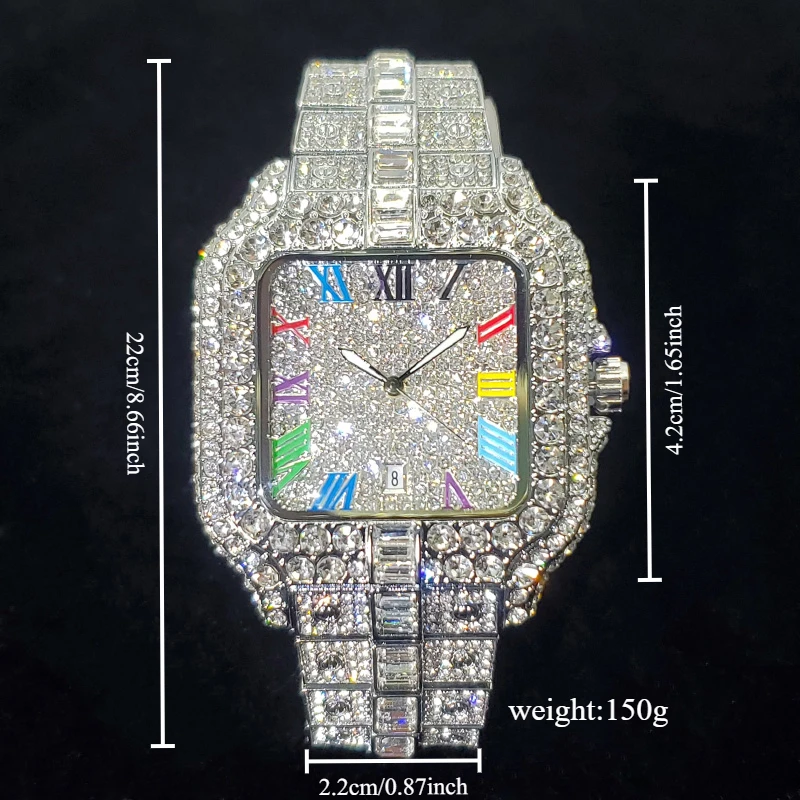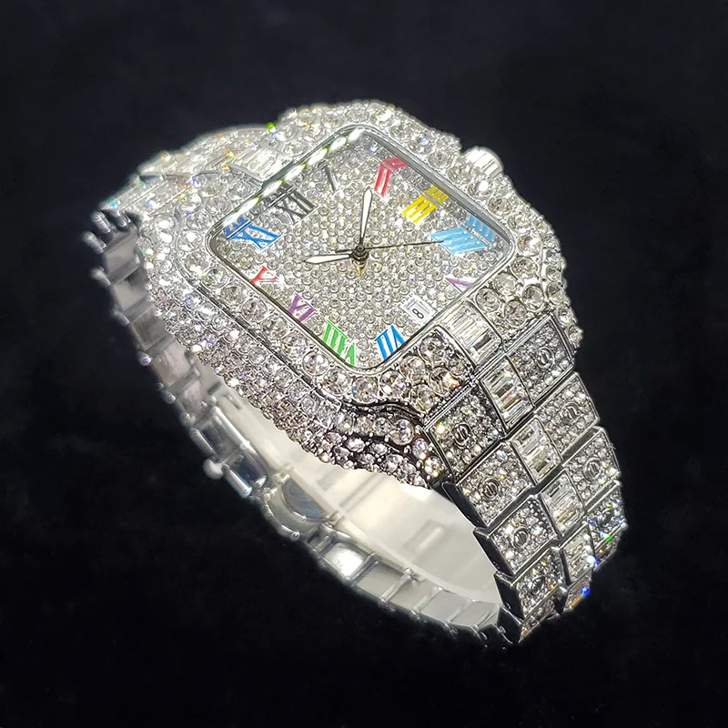 2025 New Luxury Diamond Watch Men Fashion Iced Out Square Colorful Number Watches Hip Hop Bling Jewelry Reloj Hombre for Party