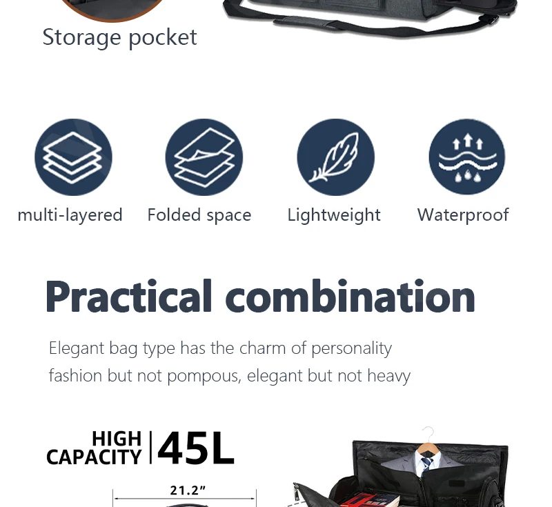 2025 New Men Waterproof Weekend Travel Work Large Capacity Multifunctional Hand Luggage Storage Two-in-One Convertible Suit Bag