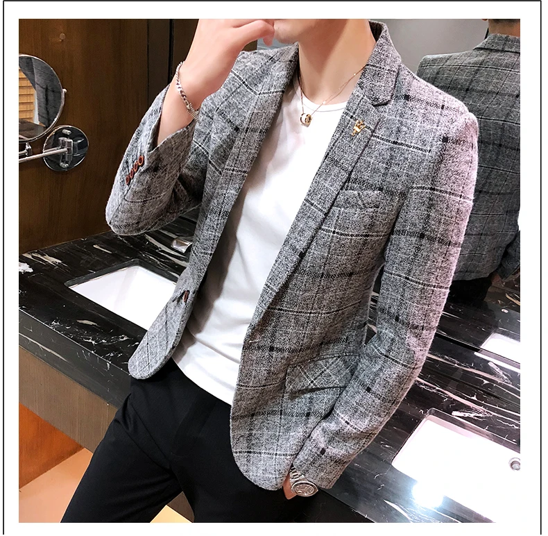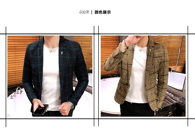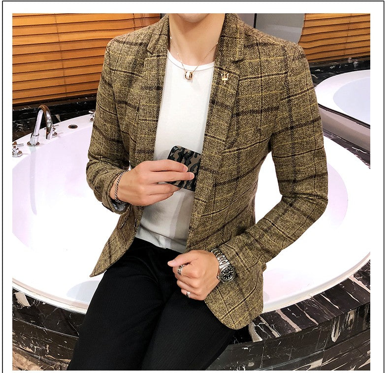 2025 New Men's Casual Plaid Suit Jacket Male Linen Plaid Business Self-cultivation Wedding Dress Party Suit Coat Plus Size S-5XL