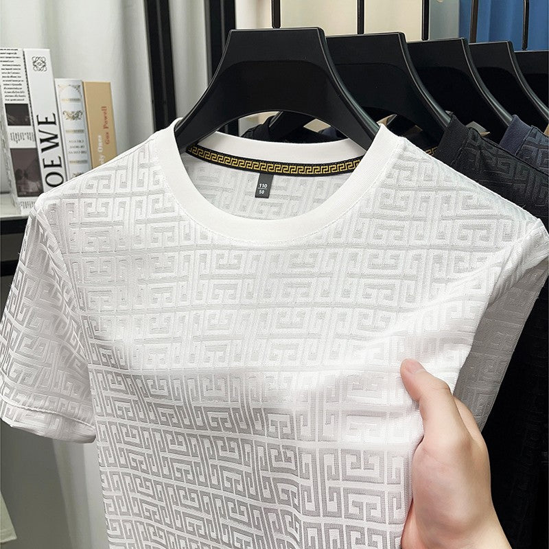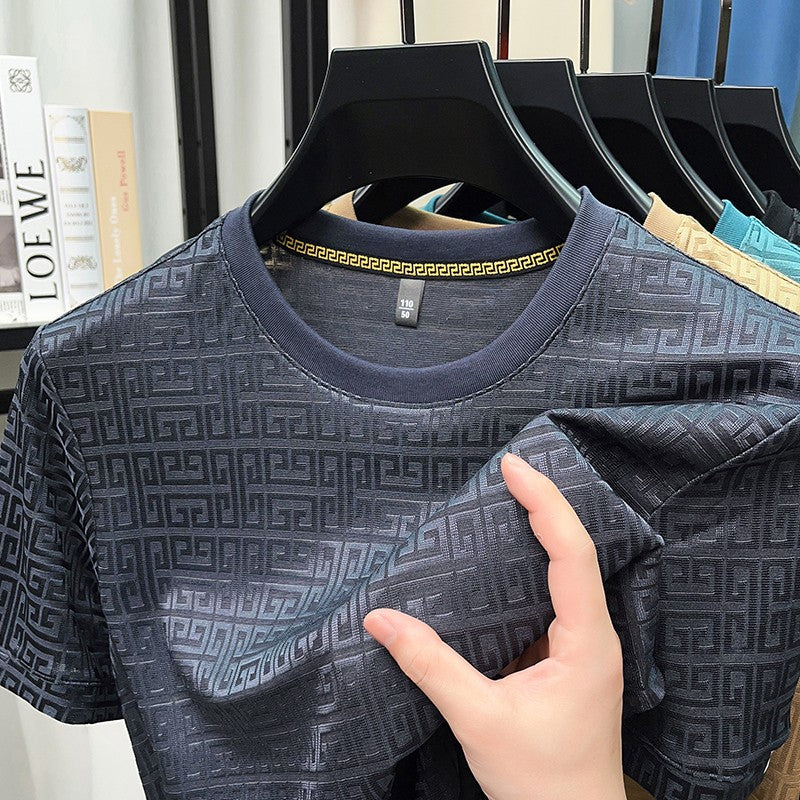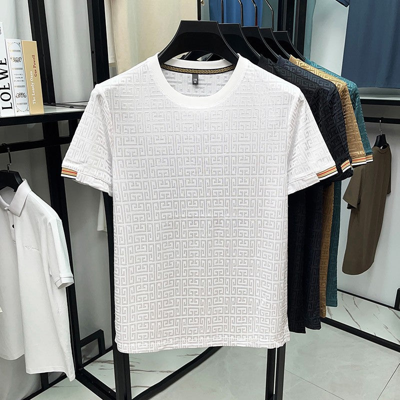 2025 New Men's Fashionable Jacquard Short Sleeved Round Neck T-shirt Casual and Comfortable All Season Versatile Top