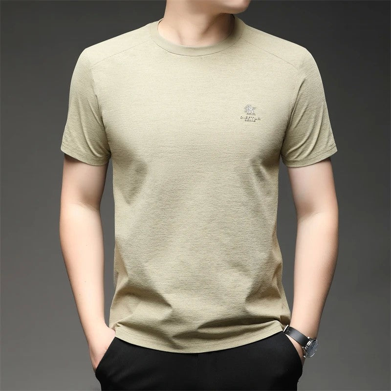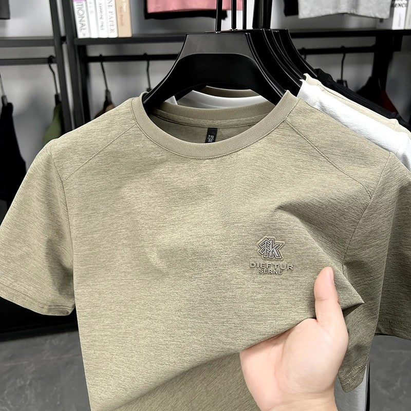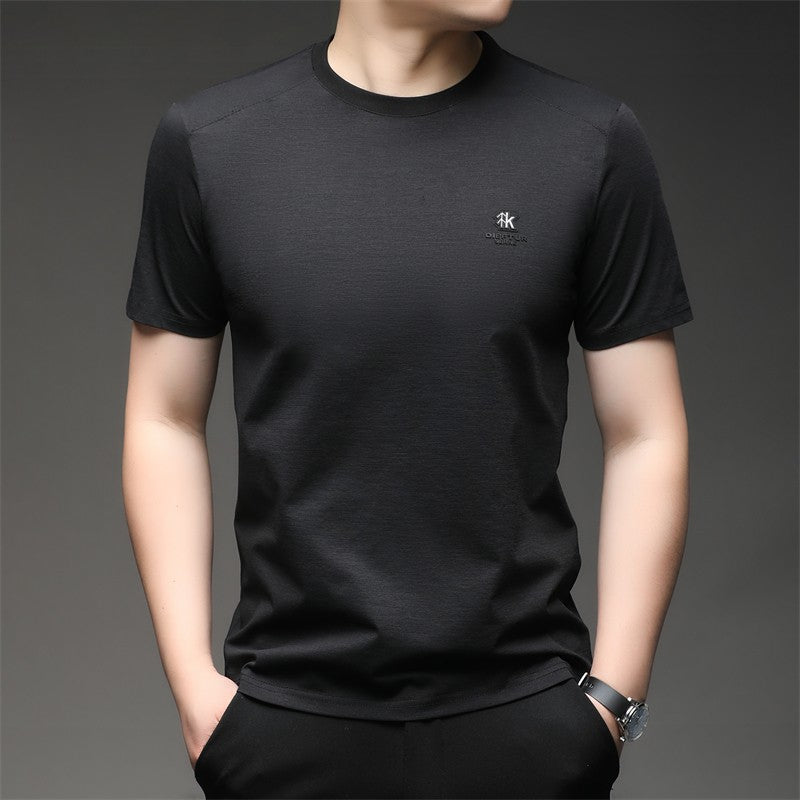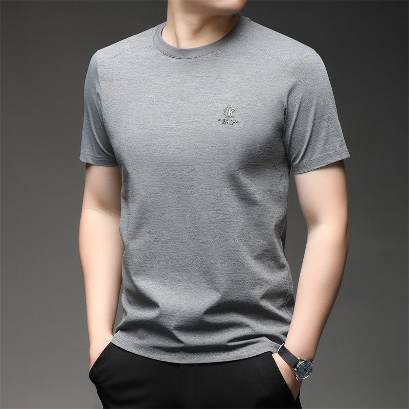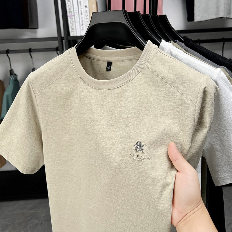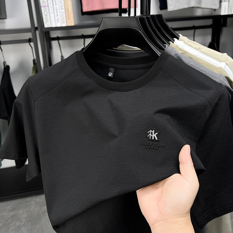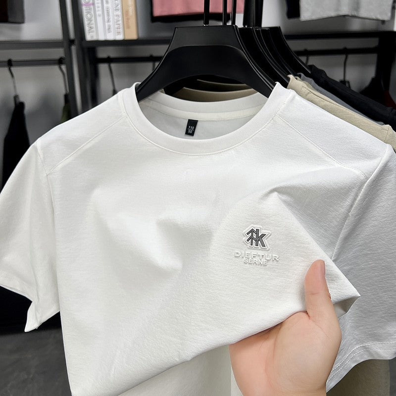 2025 New Men's Korean Style Fashion Badge Short Sleeved Sleeve Round Neck T-shirt Casual and Comfortable Summer Versatile Top