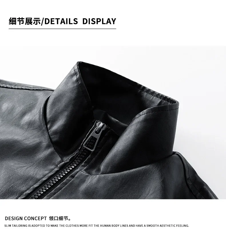 2025 New Men's Leather Jacket Spring Autumn Men Motorcycle Leather High Quality Jacket Coat Male Stand Collar Windproof Overcoat