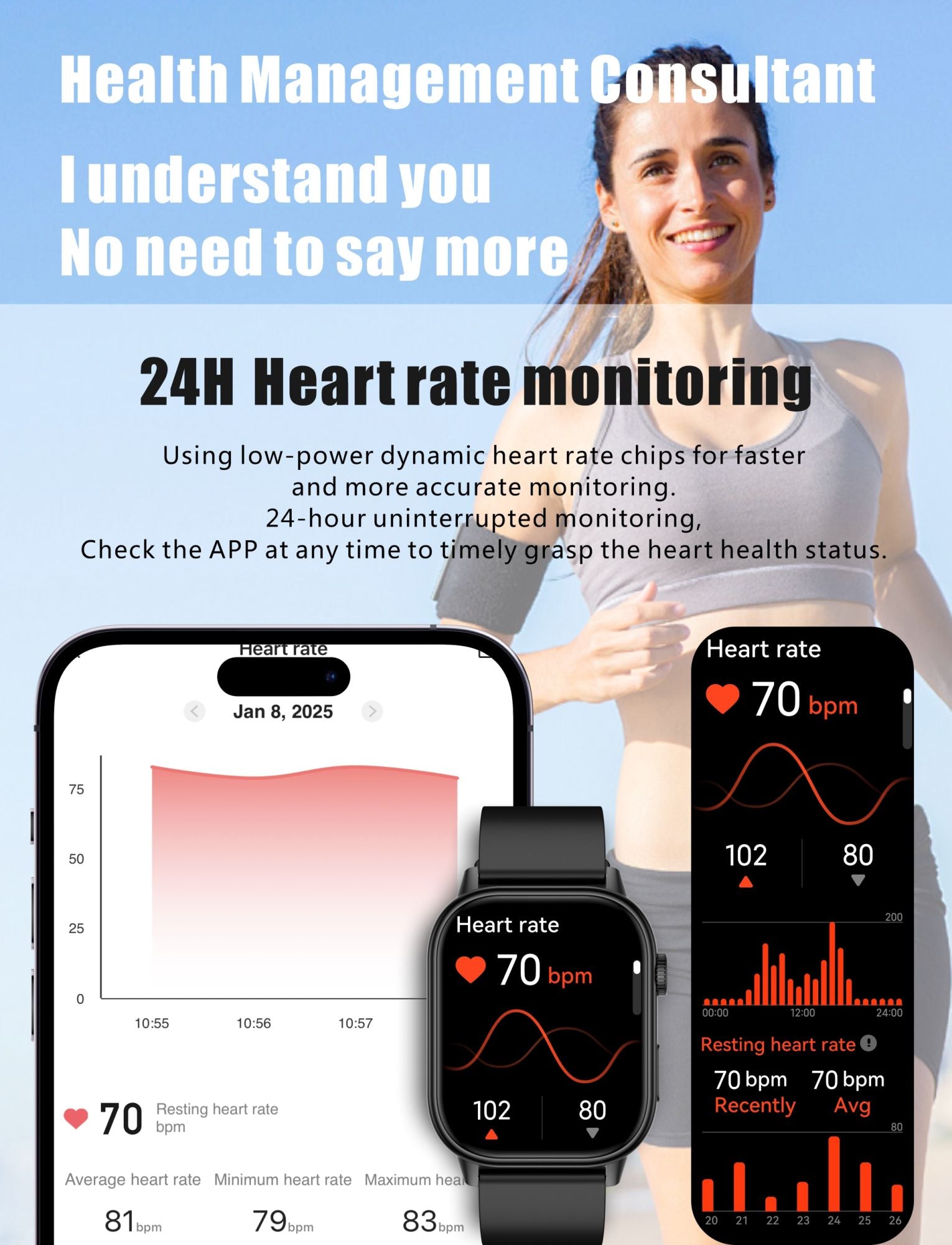 Suitable for men's and women's smartwatches: Lightweight and stylish sports smartwatch