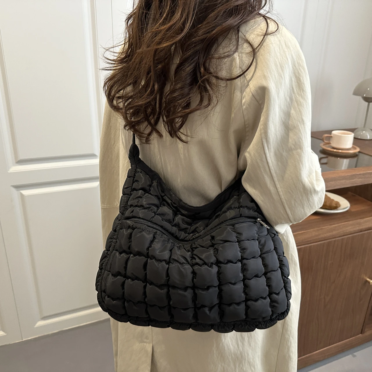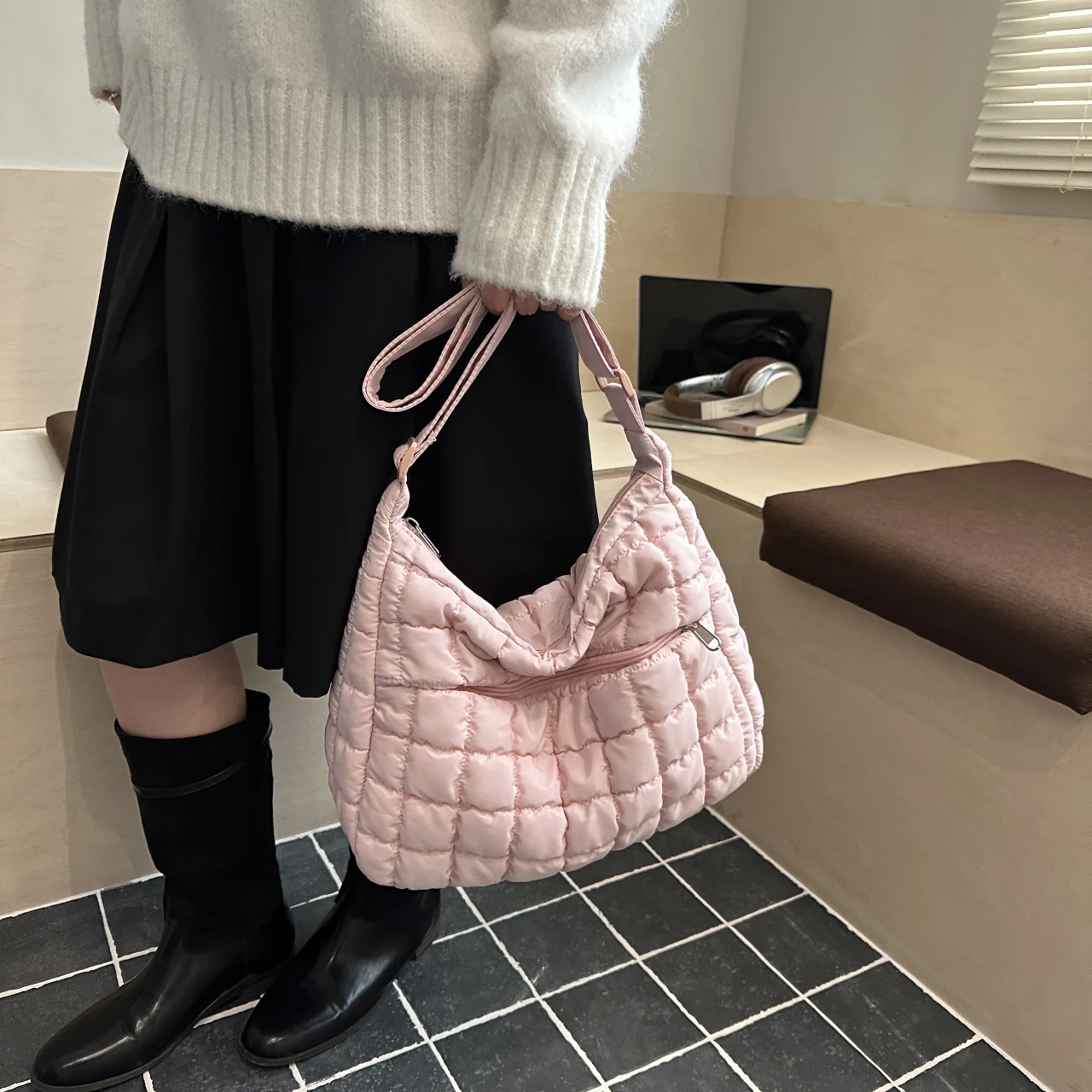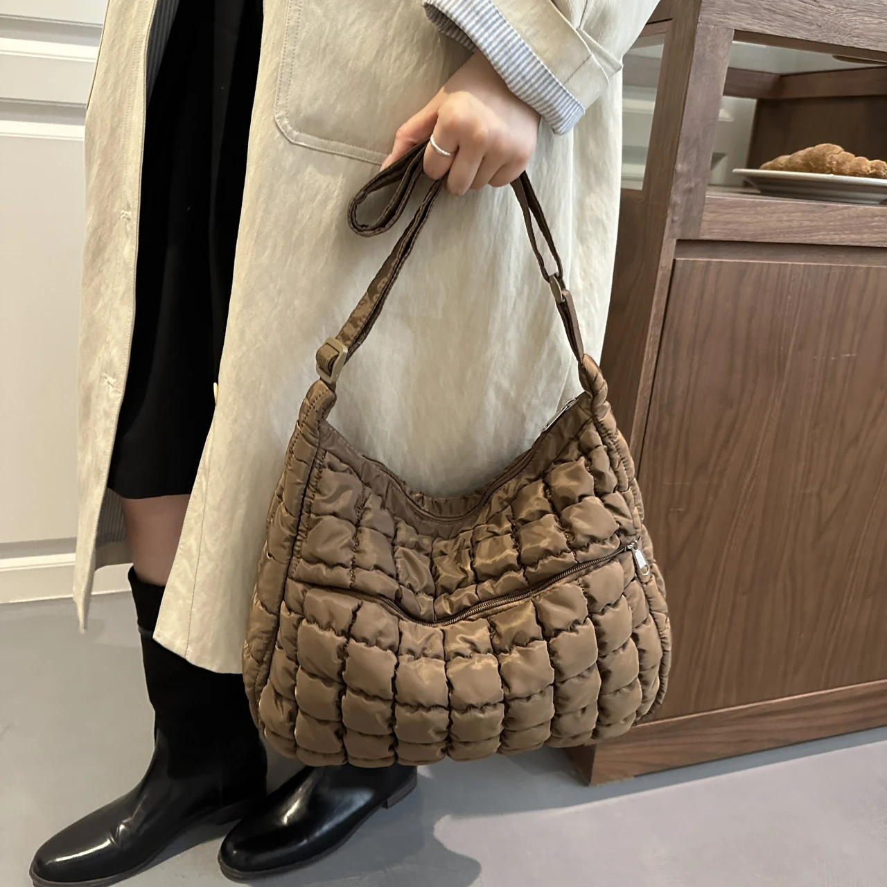 2025 New Quilted Puffer Shoulder Bag for Women Large Capacity Tote Sling Bag Fashion Casual Crossbody Satchel Bag Female Handbag