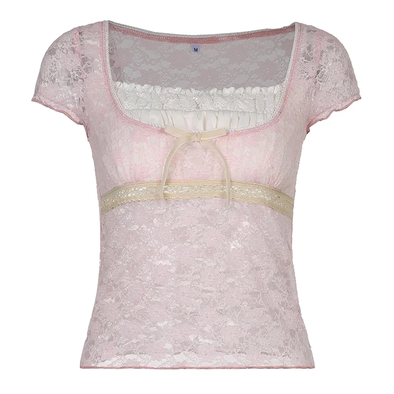 2025 New Retro Lace Tops Women y2k Gothic Sweety Shirts Short Sleeve Lace Square Neck Crop Tops and Blouses Summer Tshirt