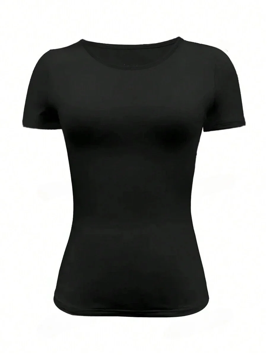 2025 New Summer Y2k Tops Womens Causal Basic T-Shirts Scoop Neck Short Sleeve Crop Tops Cute Slim Fit Tees Pullovers Clothing