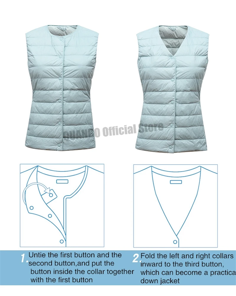 2025 New Women Sleeveless Puffer Jacket Spring Winter Female 90% White Duck Down Ultra Lightweight Packable Warm Down Liner Vest