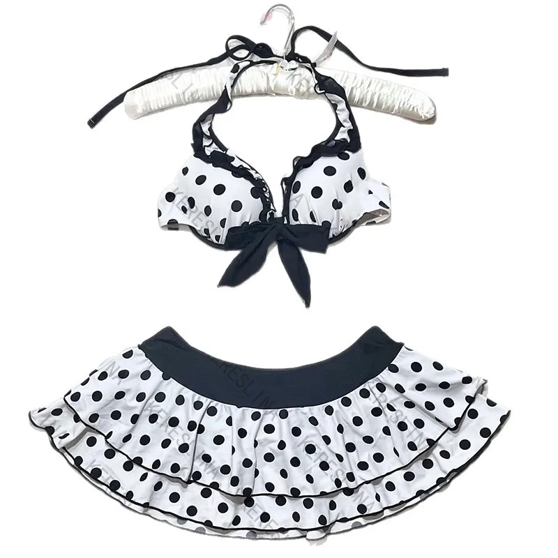 2025 new Women's bikini set cute retro casual streetwear Y2K Harajuku aesthetic hip-hop summer sweet polka dot slim Kawaii skirt
