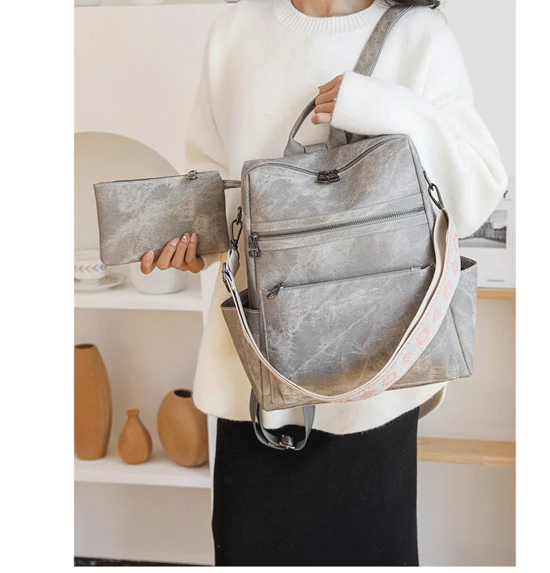 2025 New Women's PU Leather Waterproof Anti-theft Fashion Large Capacity Business Travel College Laptop Backpack Shoulder Bag