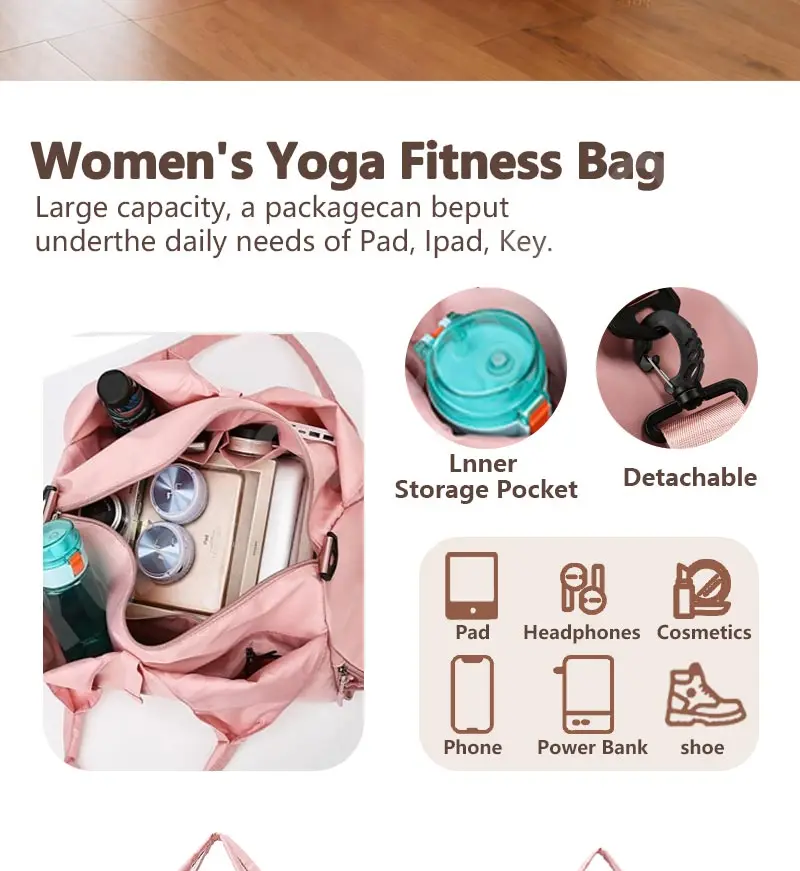 2025 New Women's Waterproof Yoga Mat Bag Fitness Pilates Portable Shoulder Bag with Shoe Compartment Dry and Wet Storage Bag