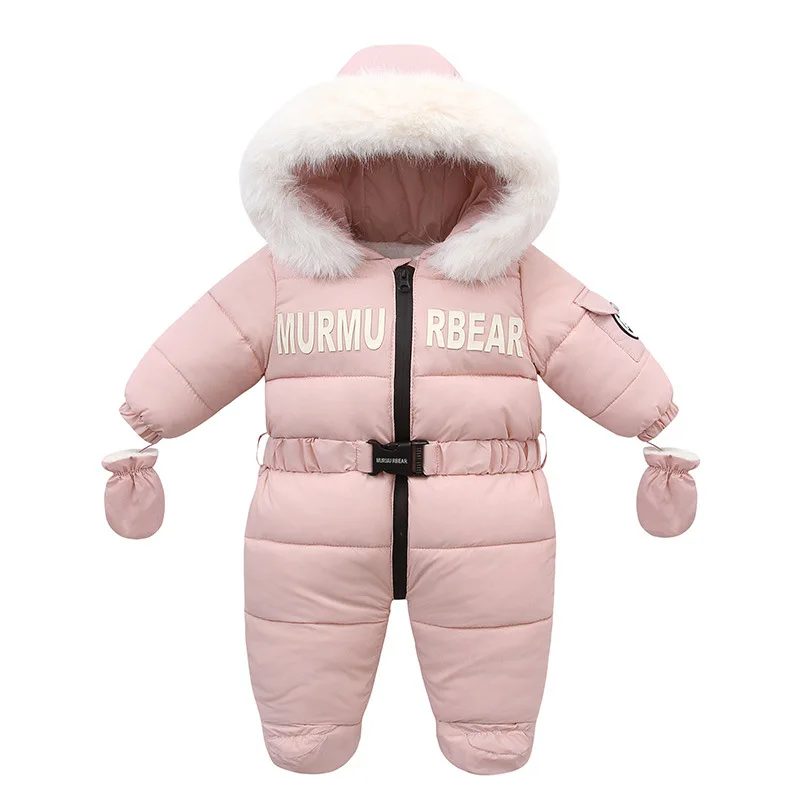 2025 Russian Winter Jumpsuit For Kids Plus Velvet Hooded Newborn Baby Romper 0-2 Years Infant Girl Winter Overalls Baby Snowwear