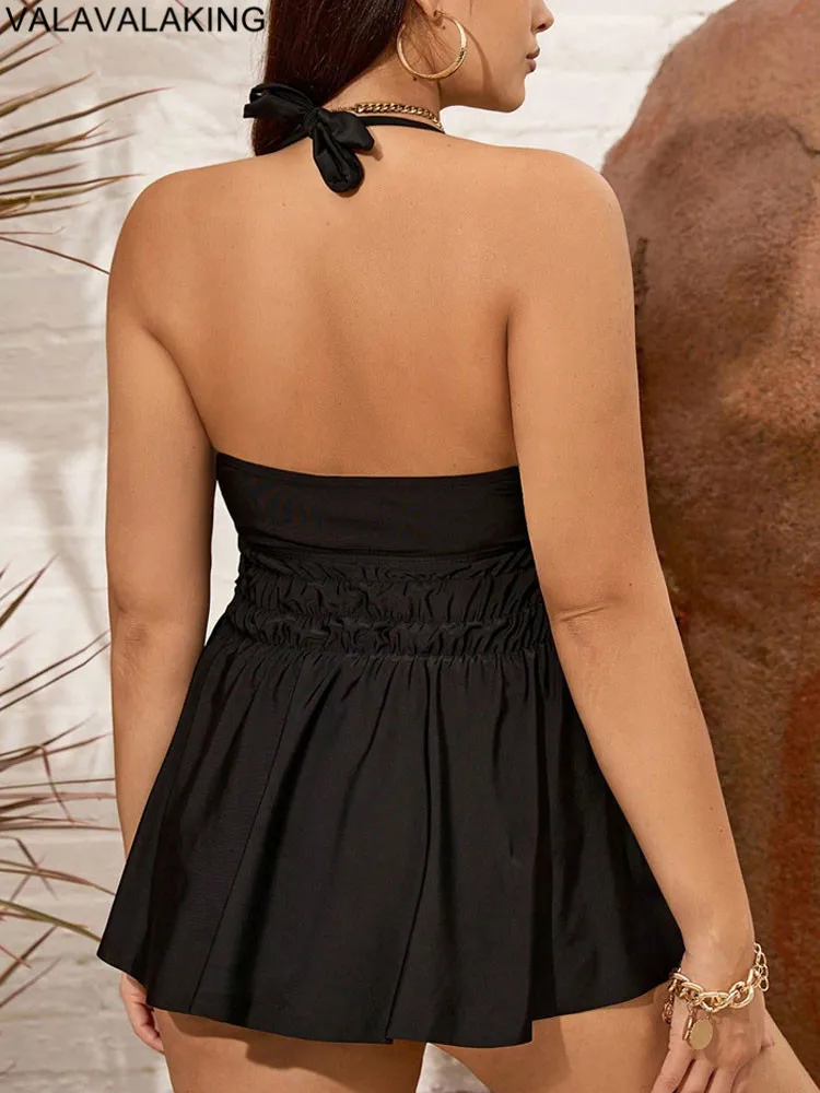 2025 Solid Halter 2 Piece Plus Size Tankini Set Women Push Up Large Dress Swimsuit Chubby Curvy Swimwear Lady Beach Bathing Suit