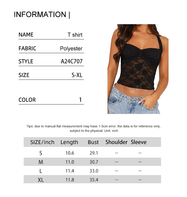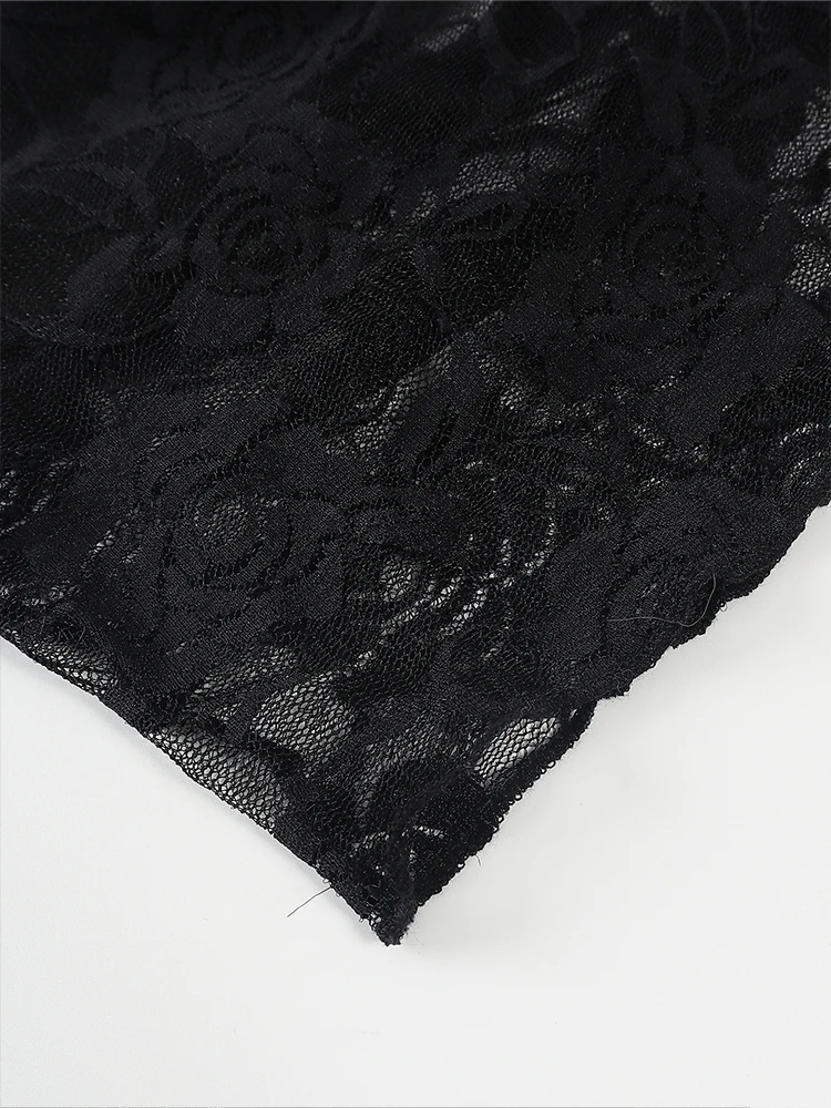 Embrace the Y2K trend with this sleeveless lace t-shirt, featuring a sexy slim fit and intricate lace detailing.