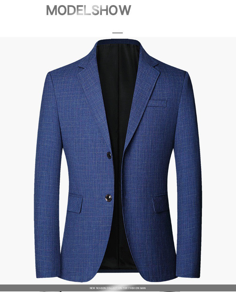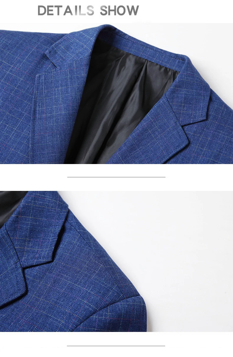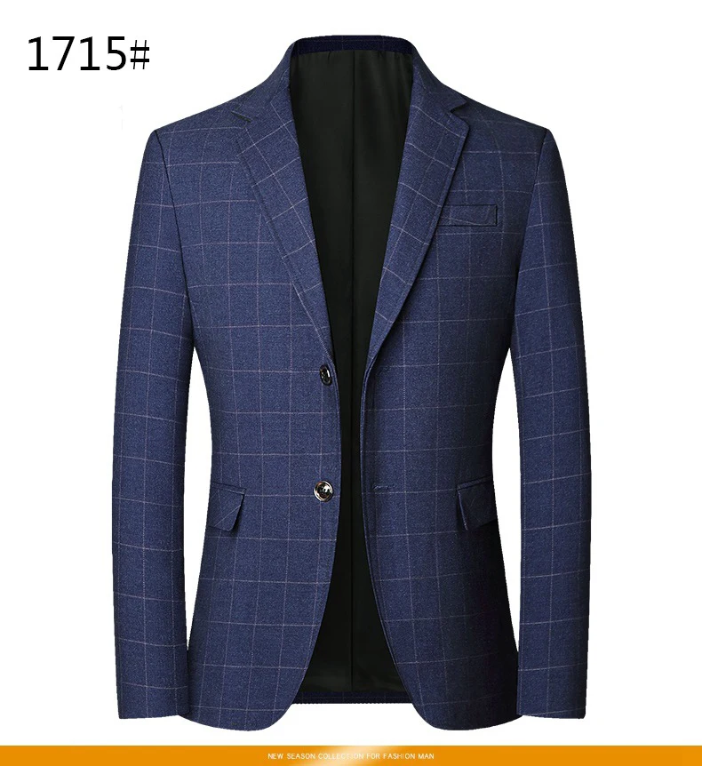 2025 Spring Autumn New Blue Checkered Non-iron Suit Jackets for Men,black Light Business Casual Men Blazer Slim Fit, Asian Size