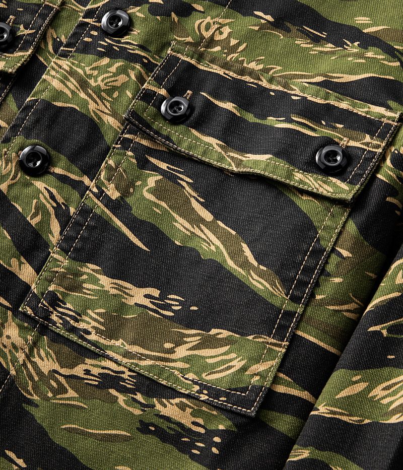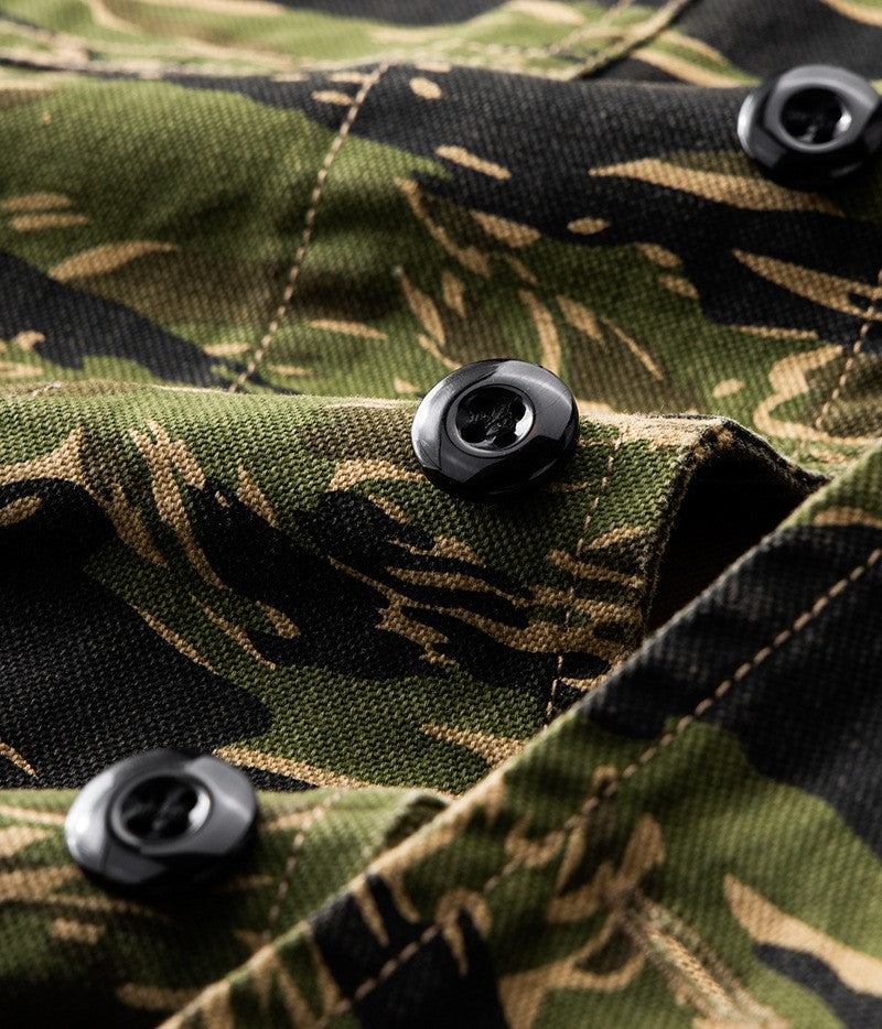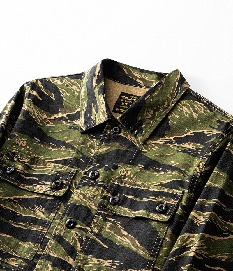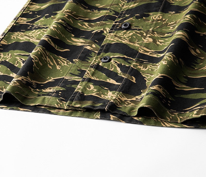 2025 Spring Men's Tiger Stripe Camo Camouflage Cargo Shirt Fashion Work Engineer Long Sleeved Shirt Jacket With Double Pockets