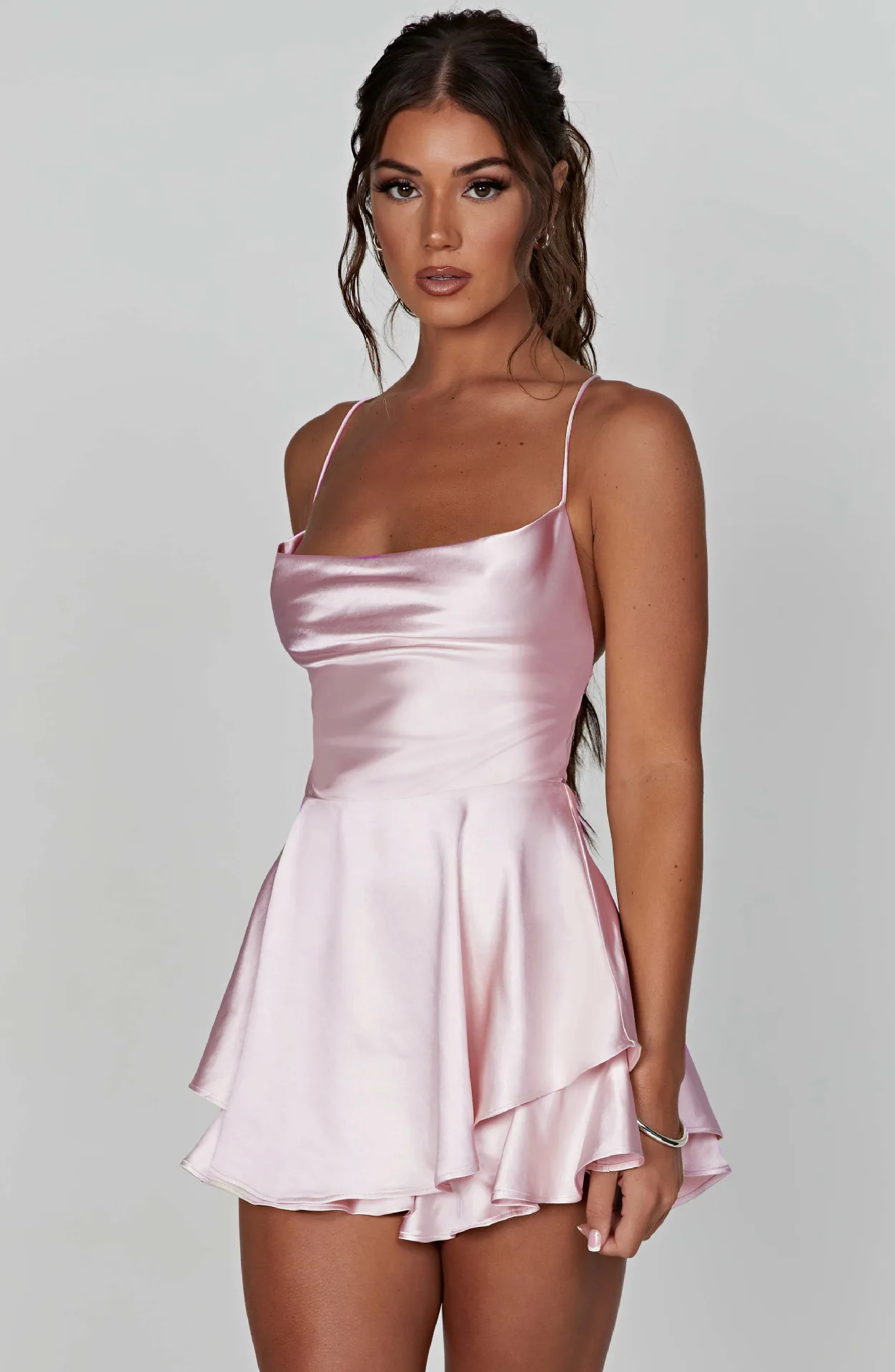 2025 Summer Hot Sale Sexy Solid Color Backless Short Dress - Crisscross Straps Satin Skirt